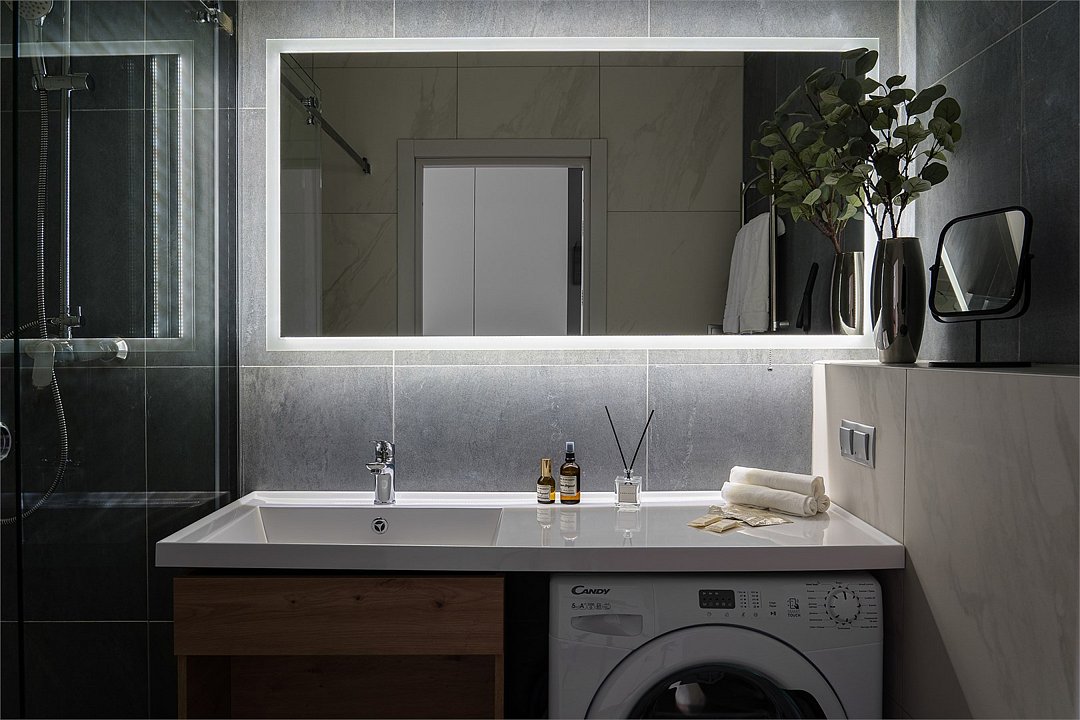 Оплачиваются дополнительно на заезде: административные расходы, связанные с регистрацией иностранных граждан, в режиме on-line, с использованием рекомендуемого Правительством Санкт-Петербурга программного обеспечения, гарантирующего полную защиту персональных данных иностранных граждан, составляют 350 рублей за каждую операцию, НДС не облагается Спальная зона, обособленное рабочее место и выделенная кухня с отдельным обеденным столом дают возможность удобного размещения и визуально разделяют пространство, предоставляя возможность как для расслабленного отдыха, так и сосредоточенной работы, и приятного спокойного ужина. В апартаментах установлен телевизор с функцией Smart TV, с помощью которой Вы всегда сможете найти желаемый контент, а для комфортного сна одна большая кровать оборудована профессиональным матрасом. Светлая ванная комната оборудована встроенной душевой кабиной и стиральной машиной, а также электрическим полотенцесушителем. Дополнительно в ванной установлен гигиенический душ, а над раковиной размещено зеркало с удобной подсветкой. Приятное сочетание цветов с яркими акцентами выгодно подчеркивает апартаменты и доставляет эстетическое удовольствие, а удачное зонирование позволяет максимально комфортно организовать проживание.Услуги и удобства