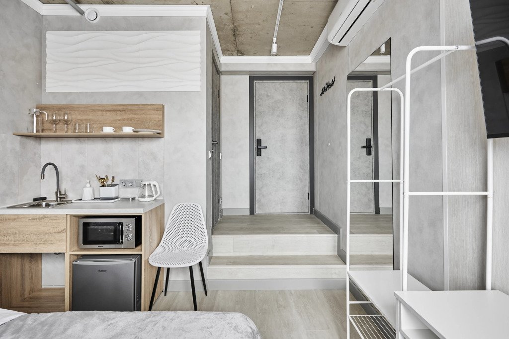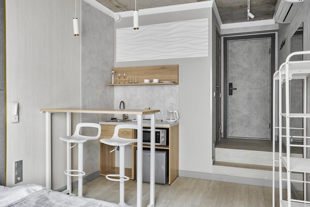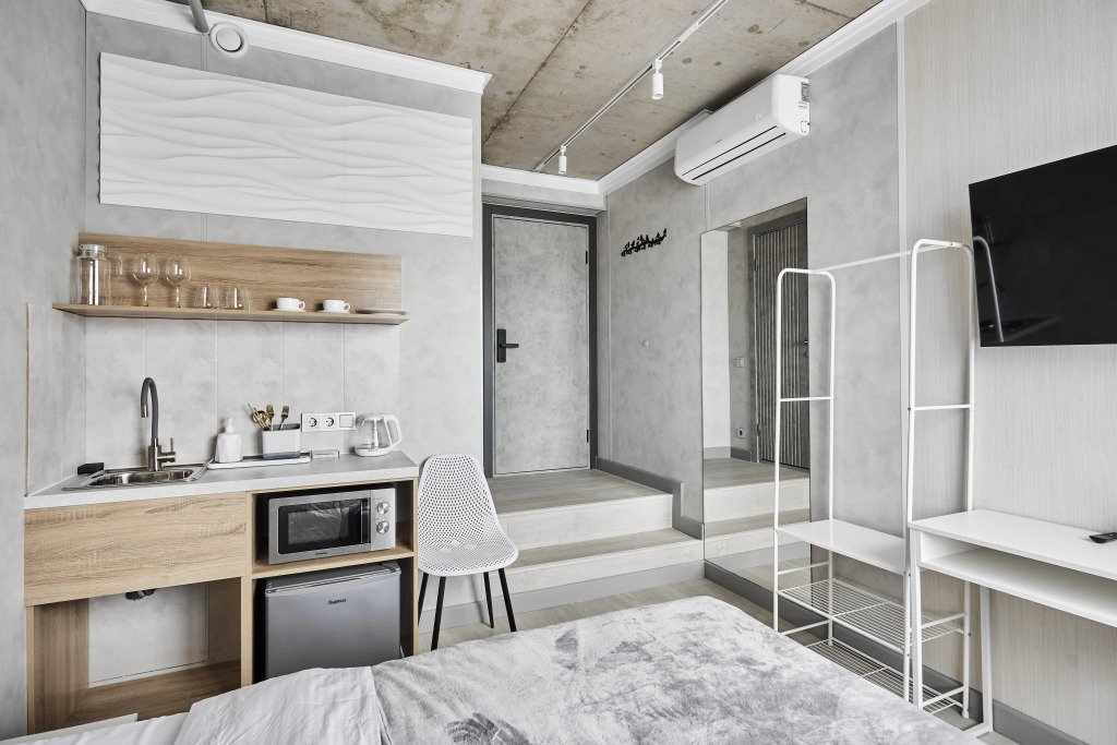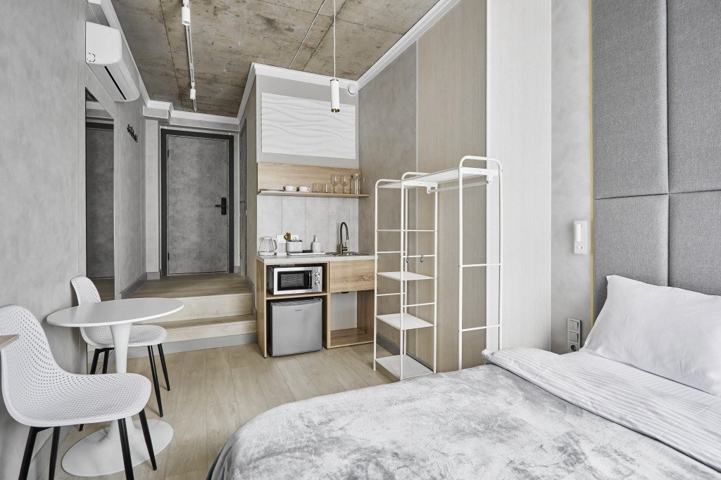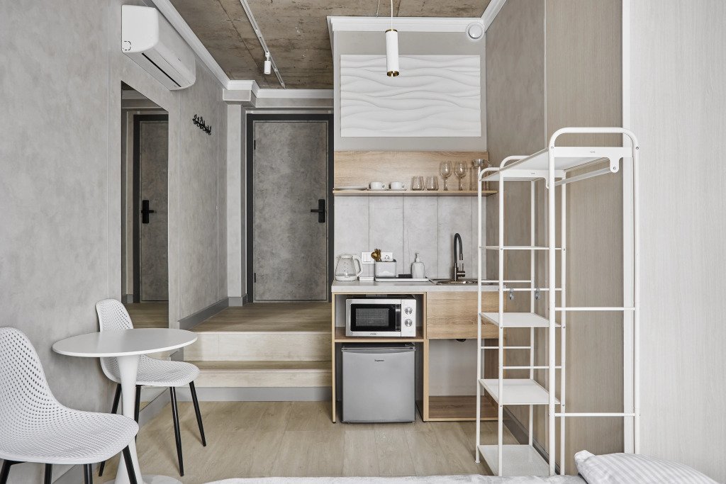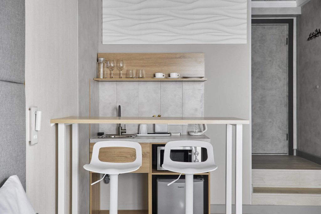 Номера оборудованы кроватями, кухонными уголками, санузлом, Smart TV, кондиционером, Wi‑Fi. Гостям предоставляются полотенца, тапочки, средства личной гигиены и зубные наборы.
