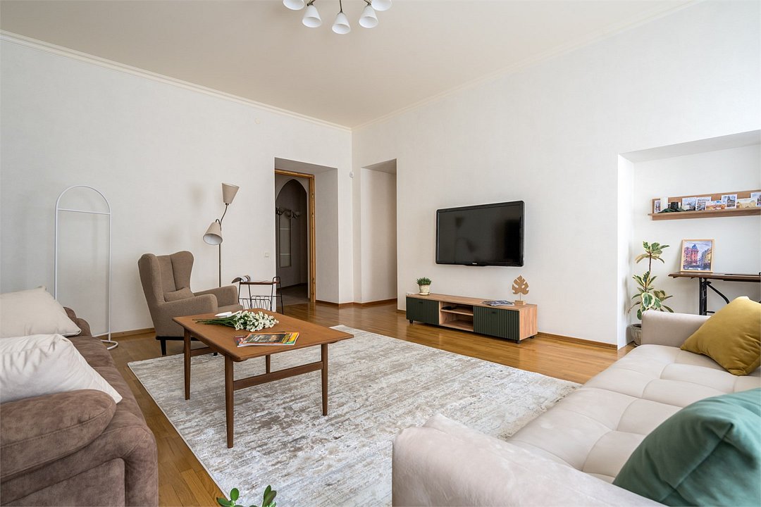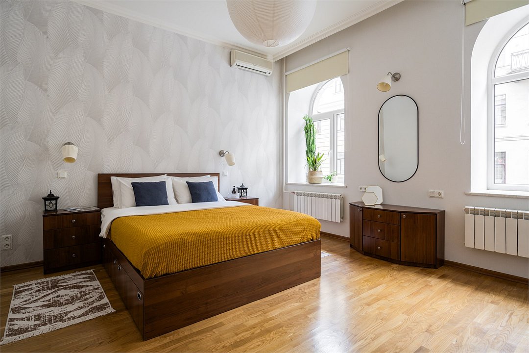 Wi-Fi, фен, вентилятор, кофемашина, утюг, обогреватель, ванная комната, ванна, теплый пол, банные принадлежности, двуспальная кровать, гладильная доска, кресла, тумбы, стулья, вешалки, обеденный стол, зеркало, ковер, две комнаты, чайный набор, набор посуды, посудомоечная машина, стиральная машина, чайник, унитаз, раковина, обеденная зона, гостиная зона, отопление, вид на город, паркет, высокие потолки, стаканы, кухонная утварь, столовые приборы, стол, туалетные средства, раскладной диван, телевизор с плоским экраном, мини-холодильник, кухонный уголок, теплые полы, духовка, угловой диван-кроватьВ квартире