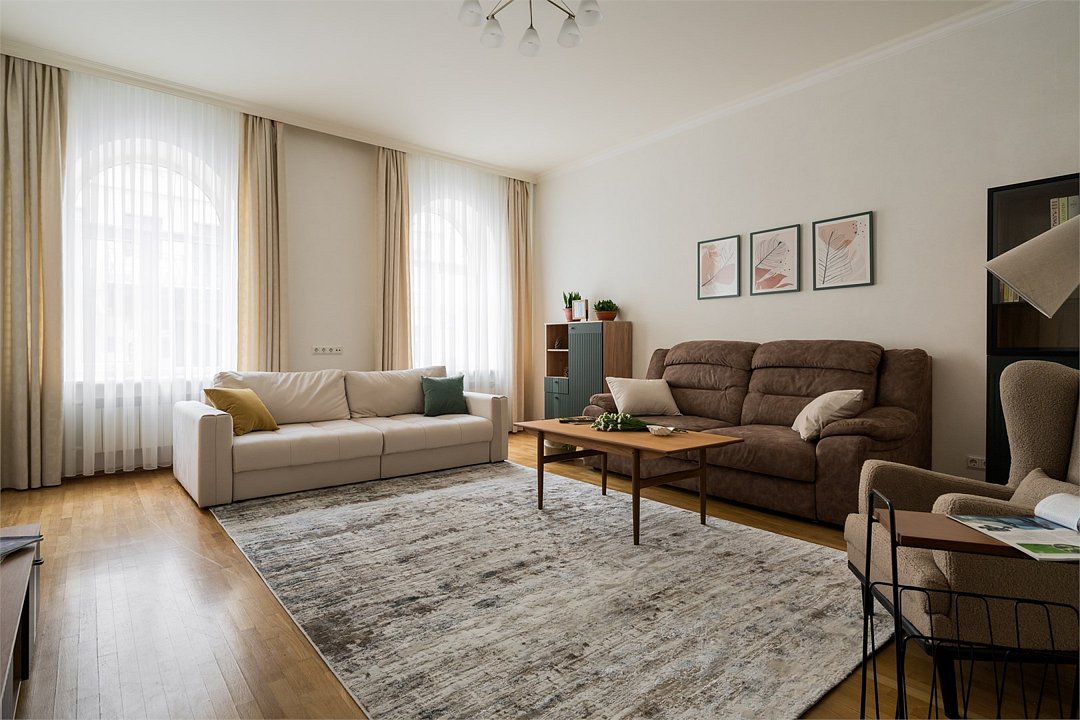 Wi-Fi, холодильник, кондиционер, фен, плита для приготовления пищи, микроволновая печь, утюг, обогреватель, ванна, теплый пол, двуспальная кровать, гладильная доска, диван, тумбы, стулья, ковер, мебельный гарнитур, две комнаты, кухня, чайный набор, набор посуды, посудомоечная машина, чайник, мягкая мебель, косметическое зеркало, гостиная зона, вид на город, высокие потолки, стаканы, кухонная утварь, стиральная машина и сушилка, туалетный столик, стол, тумба, туалет, телевизор со Smart TV, два дивана-кровати, духовка, фумигатор, межкомнатная дверь, вешалки-плечикиВ квартире