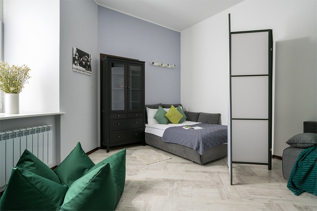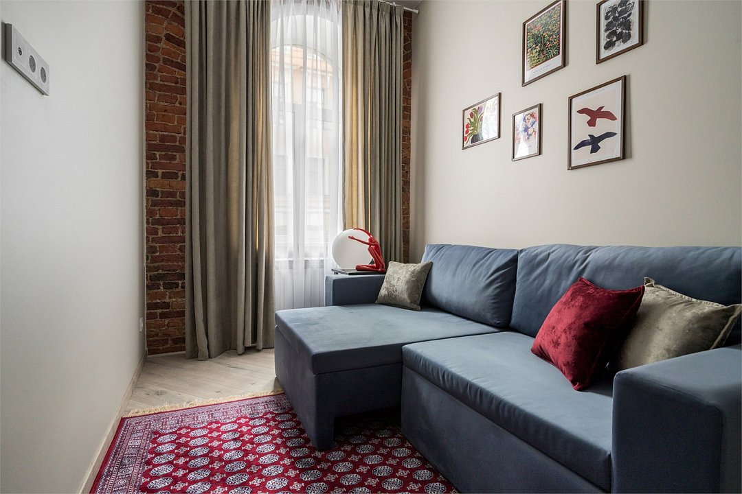 Квартира спряталась в камерном дворике на улице Рубинштейна в самом сердце Петербурга. Окна выходят на переулок Щербакова Здесь могут разместиться четверо взрослых. Отдельная спальня и просторная кухня- гостиная. Мы позаботились, чтобы в квартире было все необходимое для комфортного пребывания. Ждем Вас в гости! Площадь квартиры - 55 кв метров. В ней изолированная спальня с большой гардеробной комнатой и просторная кухня -гостиная. Диван раскладывается в два спальных места. Для гостей доступна парковка во дворе. Это особенно удобно учитывая, что на улице Рубинштейна парковка платная.Услуги и удобства