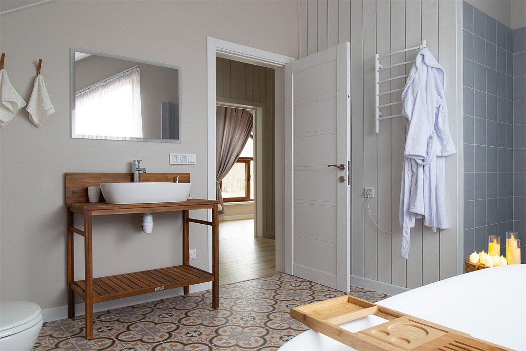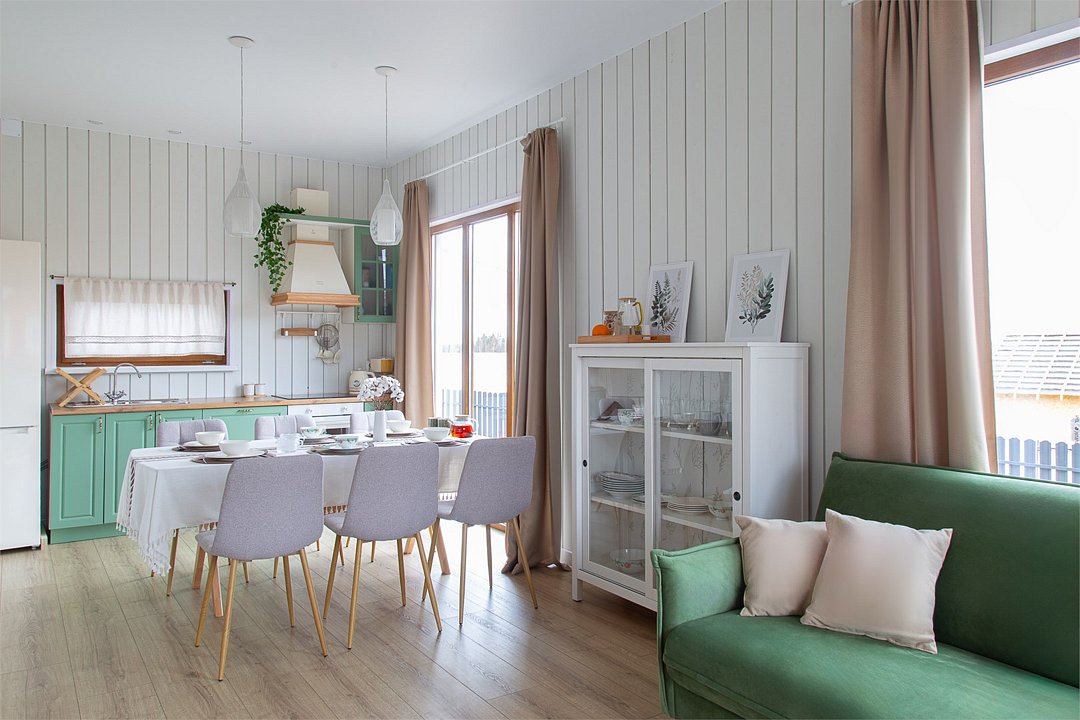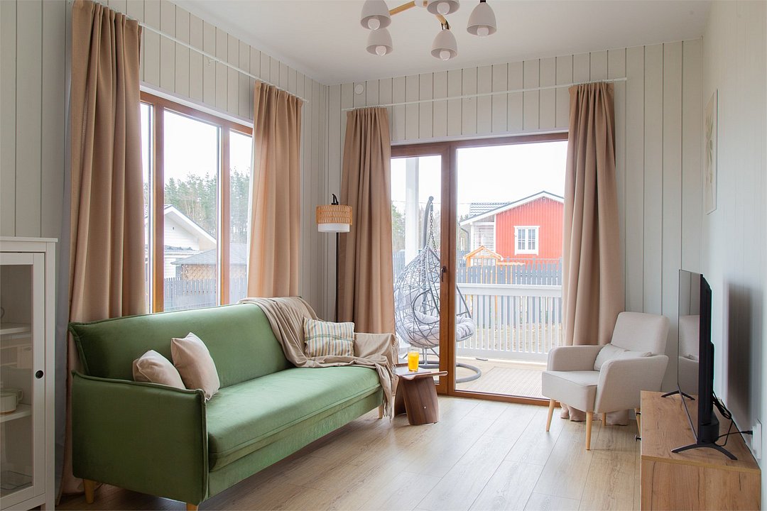Wi-Fi, фен, утюг, обогреватель, душевая кабина, ванна, теплый пол, терраса, кухня, чайник, гостиная зона, отопление, три двуспальные кровати, четыре комнаты, кухонная посуда, стаканы, две ванные комнаты, мангал, панорамные окна, диван-кровать, москитная сетка, телевизор со Smart TV, теплые полы, духовка, кофеваркаВ доме