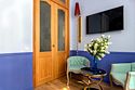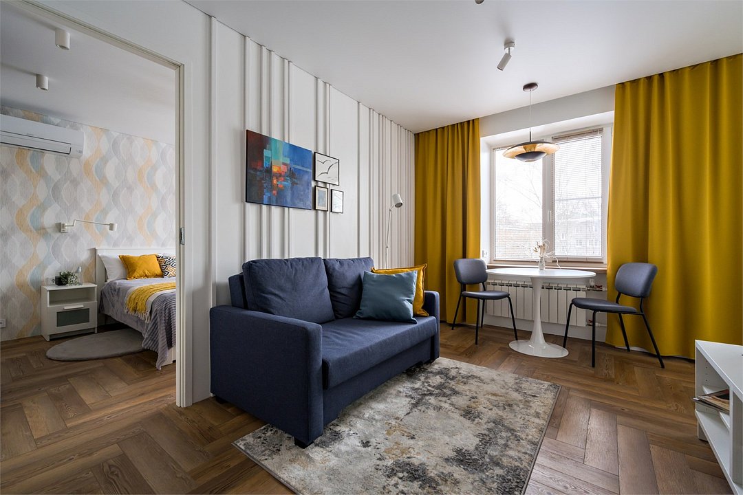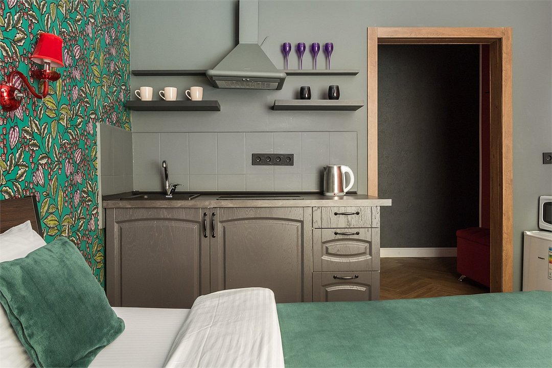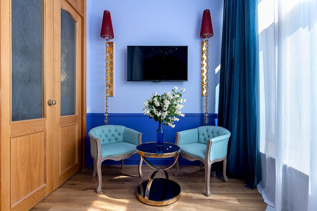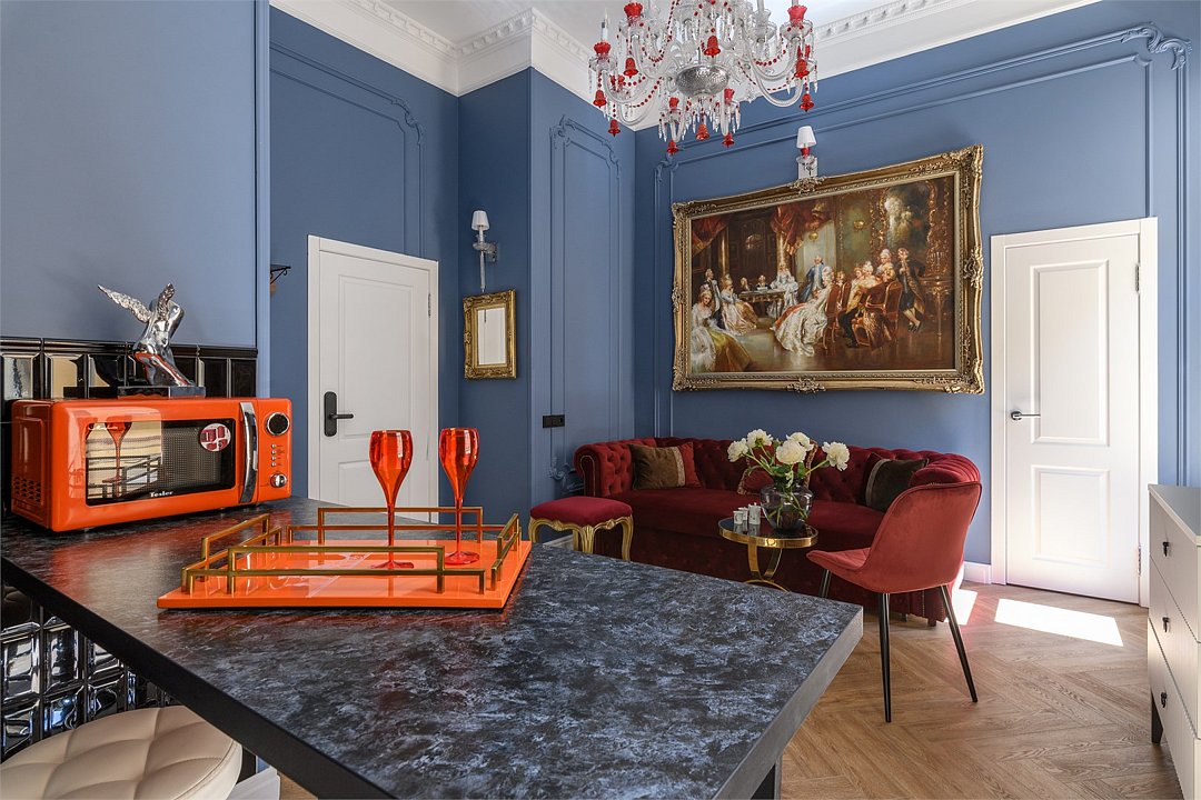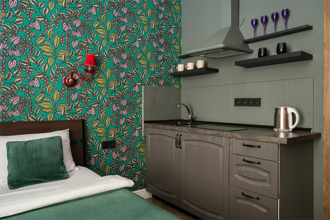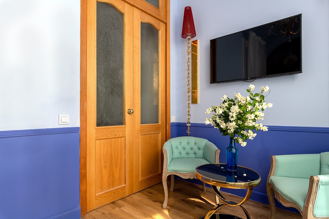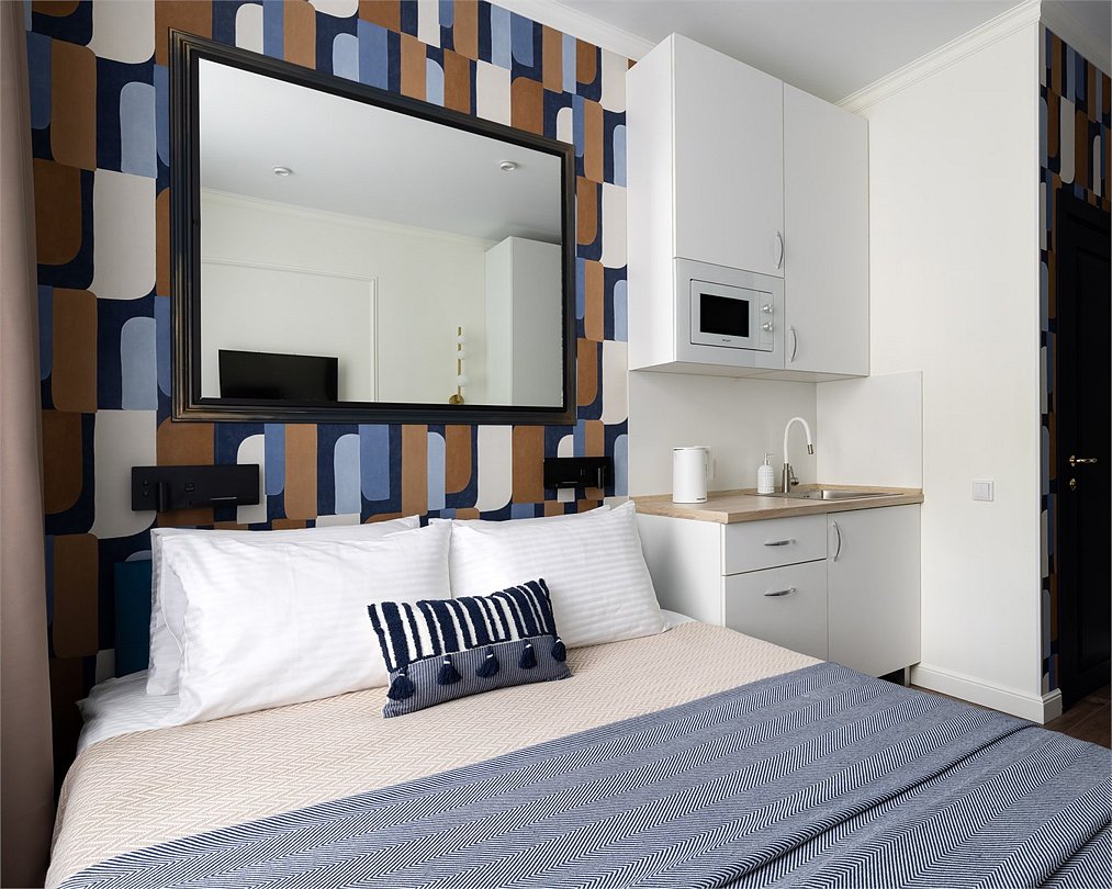 Комплекс апартаментов “Дом Смотрителя” располагается сразу за Казанским собором, в 5 минутах от ст.м. “Невский проспект”. Благодаря удачному расположению на тихой улочке вы сможете проживать в самом сердце города вне загруженных центральных улиц. ”Дизайнерские апартаменты” выполнены в современном стиле, искусно сочетая лазурные и алые цвета интерьера и мебели. Данная квартира особенно понравится любителям креатива и творчества! Апартаменты размещают до 4 гостей. В отдельной комнате расположена двуспальная кровать с ортопедическим матрасом, а в гостиной - удобный диван, который при необходимости, раскладывается, превращаясь в односпальное/двуспальное место. Всё постельное белье самого высокого качества. В апартаментах предусмотрено все для комфортного отдыха и проживания: бесплатный Wi-Fi, Smart TV, утюг, гладильная доска, система хранения одежды, обеденная зона и зона для отдыха. Два больших окна студии выходят в тихий двор - ночной шум центра города не помешает вашему отдыху. Собственная кухня располагает всем необходимым для приготовления любимых блюд: электроплита, микроволновая печь, чайник, холодильник, а также посуда и столовые приборы. В ванной комнате вы найдете фен и комплекты свежих полотенец. В общей зоне есть стиральная машина и порошок, которыми можно воспользоваться в любое время совершенно бесплатно. Апартаменты идеально подойдут как для семейного проживания, так и для романтического свидания, а близость ко всем достопримечательностям сэкономит ваше время и позволит увидеть больше, даже за самый короткий отдых! Важно: Стандартное время заезда: 14:00 Стандартное время выезда: 12:00 Для заселения вам потребуется прислать фото паспорта. -при проживании взимается залог 5000 рублей (возвращается после выезда и уборки). -для заселения понадобится прислать фото паспорта . -у нас запрещено проведение вечеринок(установлено общедомовое видеонаблюдение), КУРЕНИЕ/парение любых курительных средств и жидкостей, в том числе на балконе. Штраф 5000 рублей При бронировании вы можете оформить ранний заезд или поздний выезд.Услуги и удобства