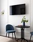Wi-Fi, холодильник, фен, электронные замки, плита для приготовления пищи, утюг, кровать «King size», стулья, шкаф для одежды, вешалки, журнальный столик, зеркало, унитаз, душ, вид на город, вид во двор, туалетные средства, телевизор с плоским экраном, телевизор со Smart TV, вешалки-плечики, тропический душВ студии