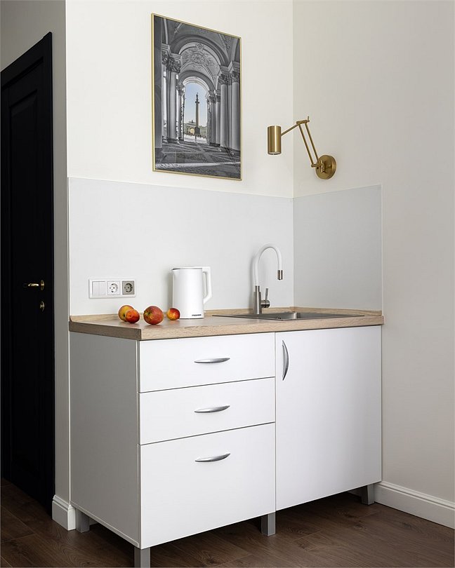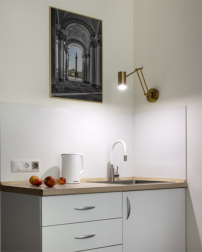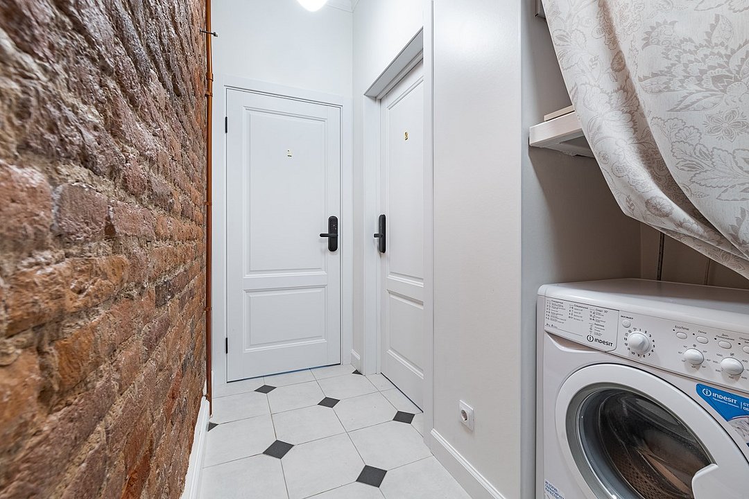 Дизайнерские студии у Эрмитажа - это 2 одноуровневые студии, оформленные в светлых тонах с яркими деталями в виде мебели. Дизайнерский интерьер выполнен в минималистическом стиле, создающий атмосферу современности и комфорта, а благодаря большим окнам в студиях светло и уютно. Окна выходят в тихий питерский дворик - идеальный вариант для ценителей тишины и покоя. В каждой студии есть всё для полноценного проживания: просторный шкаф с зеркалом в полный рост, фен, утюг, плита, чайник, холодильник, микроволновая печь, вся необходимая посуда и столовые приборы - вы сможете готовить любимую еду прямо в студии! Ванная комната оборудована современной сантехникой, стеклянной душевой, полотенцесушителем, раковиной с тумбой и зеркалом. А мы подготовим комплекты свежих полотенец для вас. В гостиной зоне всё предусмотрено для отдыха после насыщенного дня: двуспальная кровать с ортопедическим матрасом, удобный диван, Smart TV, обеденный стол, стулья. Отдыхайте и работайте с комфортом - в апартаментах работает Wifi с отличной скоростью. Диван в гостиной раскладывается и при необходимости превращается в спальное место для двоих. Таким образом, в студии могут размещаться до 4х гостей - отличный вариант размещения для всей семьи! В апартаментах предусмотрена общая зона, в которой установлена стиральная машина. Стирка совершенно бесплатна для наших гостей, порошок предоставляем. В общей зоне можно оставить вещи до заезда или после выезда. Великолепное расположение в самом престижном районе “Золотой треугольник” - еще один плюс данных апартаментов: за углом Дворцовая площадь и Исаакиевский собор. В пешей доступности находятся все достопримечательности города. Важно: Для заселения вам потребуется прислать фото паспорта. Стандартное время заезда: 14:00 Стандартное время выезда: 12:00 При бронировании вы можете оформить ранний заезд или поздний выезд.Услуги и удобства