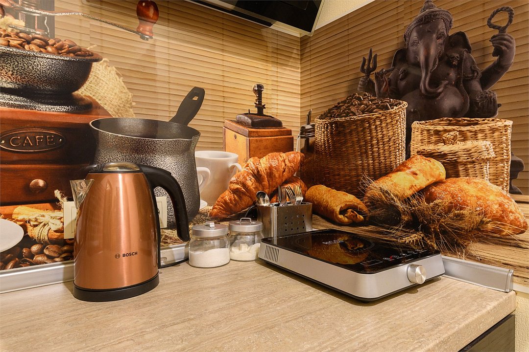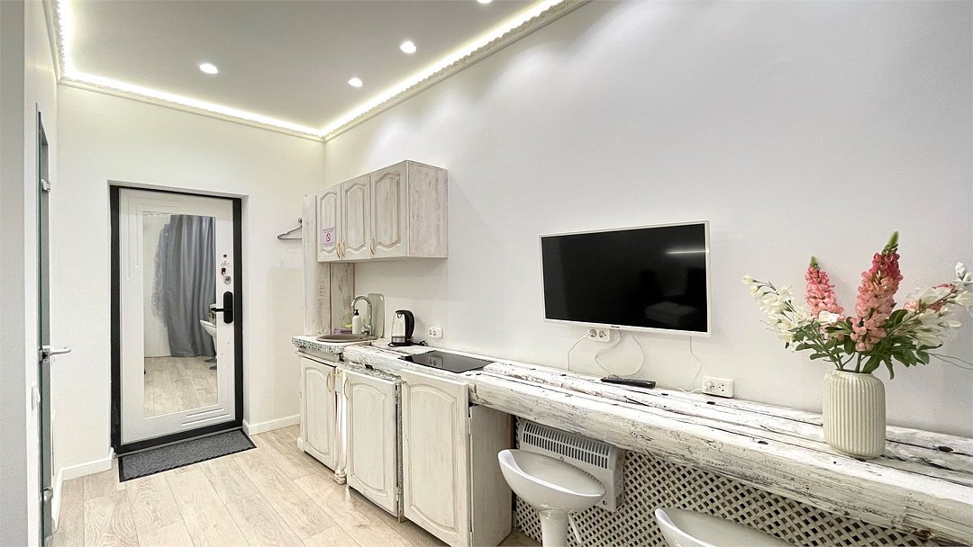 Wi-Fi, двуспальная кровать, чайник, душ, кухонная посуда, телевизор с плоским экраном, мини-кухняВ студии
