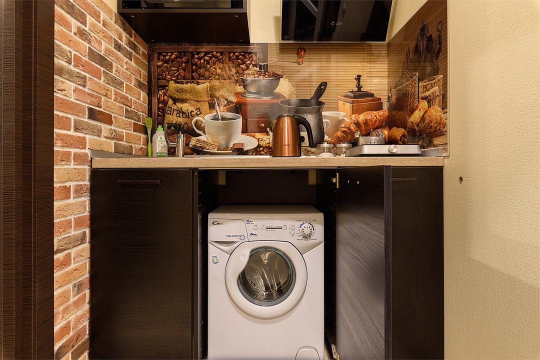 Wi-Fi, фен, электронные замки, плита для приготовления пищи, микроволновая печь, утюг, двуспальная кровать, гладильная доска, стулья, шкаф для одежды, вешалки, обеденный стол, зеркало, набор посуды, стиральная машина, унитаз, раковина, отопление, душ, кулер на этаже, вид во двор, кухонная утварь, сушилка для белья, диван-кровать, телевизор с плоским экраном, мини-холодильник, мини-кухняВ апартаментах