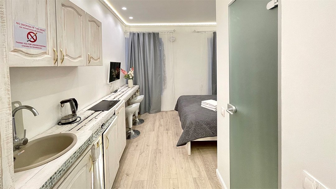 Студии расположены в домашнем апарт-отеле "Дом Литераторов" на 1 этаже. Окна студий выходят в тихий двор. Квартира-студия максимально функциональная: имеет выделенную спальную зону с удобной двухспальной кроватью. Также, в студии сделана гостиная зона с диваном-кроватью и TV с плоским экраном, мини-кухня с посудой и техникой для приготовления пищи, санузел с душем и туалетом. Несмотря на то, что в Петербурге жаркое лето длится недолго, мы предусмотрели полноценные кондиционеры для Вашего комфорта. Вас порадует множество удобных мелочей. Двор закрывается на автоматические ворота-калитку. Вокруг множество атмосферных кафе, бистро, ресторанов, магазинов, в том числе работающих круглосуточно; хорошая кондитерская. Ближайшее метро - 3 минут пешком. Пешие прогулки к культовым достопримечательностям: Казанский и Исаакиевский соборы, Дворцовая площадь, Эрмитаж. Метро 3 мин. пешком.Услуги и удобства