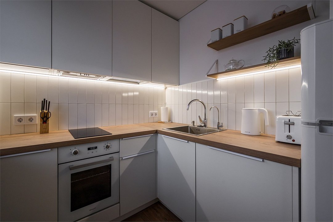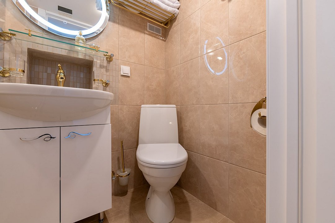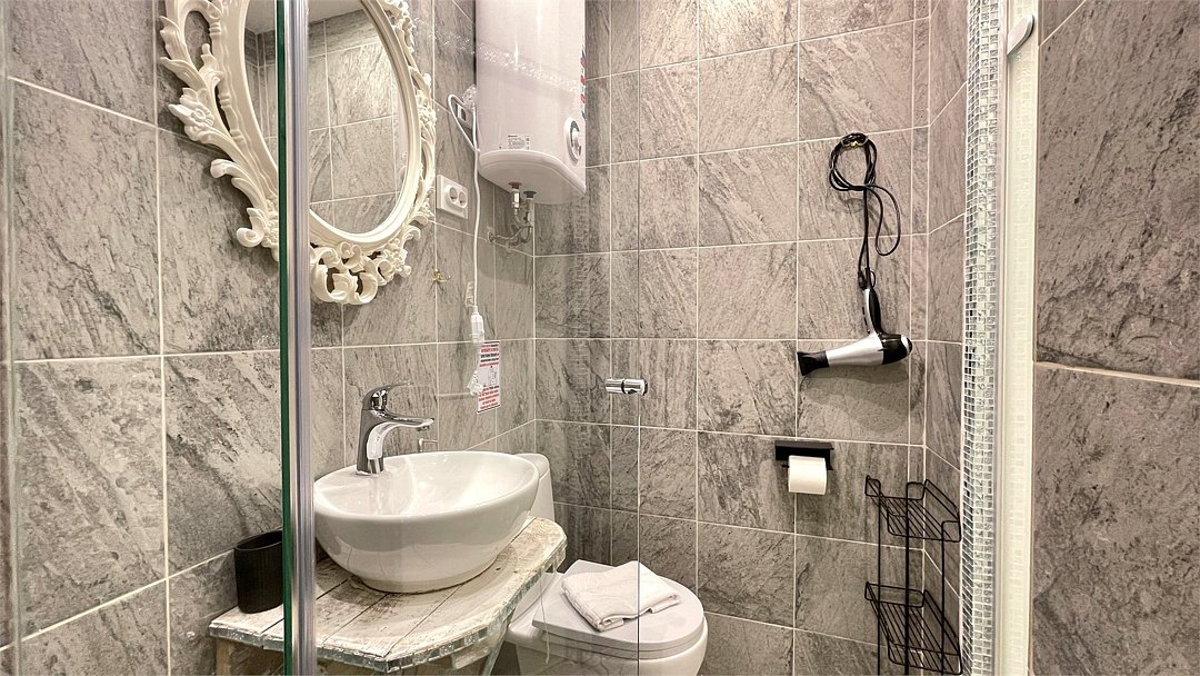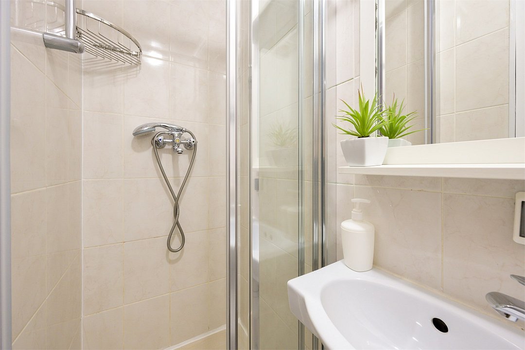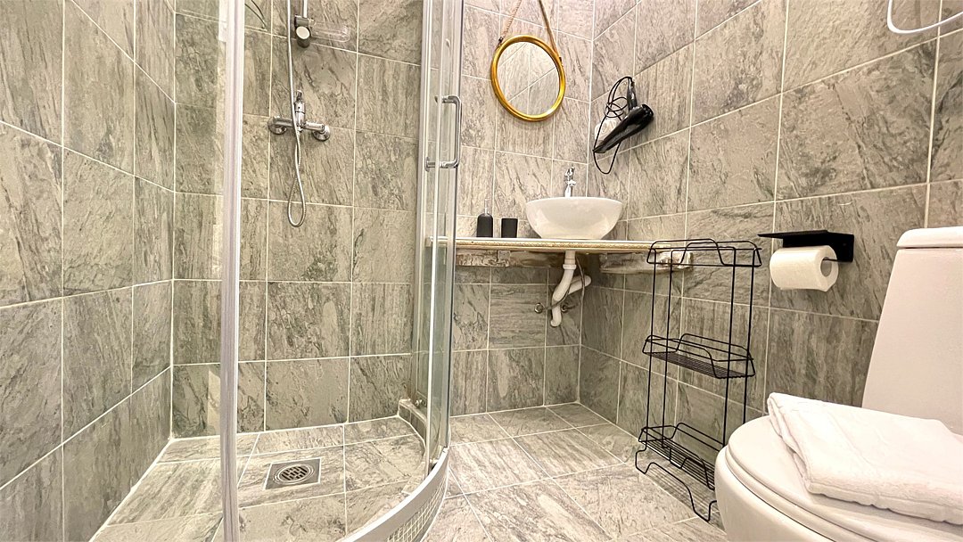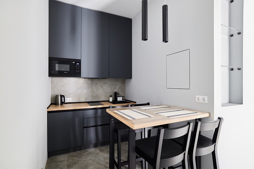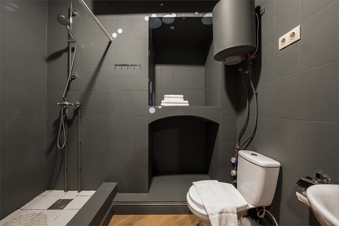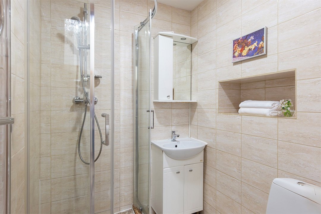 Каждый номер предлагает вам все самое необходимое для комфортного отдыха. Здесь вы найдете отдельную ванную комнату с душевой кабиной, фен и холодильник для ваших личных нужд (морозильник доступен в общей зоне). Каждая комната оборудована кондиционером, смарт-ТВ и беспроводным интернетом, который охватывает всю территорию, обеспечивая вам возможность оставаться на связи в любое время. В общей зоне вы найдете стиральную машину, что делает ваш отдых еще более удобным. Мы гордимся бесперебойной системой подачи горячей и холодной воды, которая обеспечит вам максимальный комфорт. Общая кухня площадью 14.5 квадратных метров оборудована встроенной индукционной плитой, духовым шкафом, микроволновой печью и посудомоечной машиной, а также большим двухкамерным холодильником. Вся необходимая утварь для готовки всегда под рукой, а измельчитель мусора значительно упростит процесс уборки. Здесь также есть уютная зона для приема пищи с большим обеденным столом и стульями, где вы сможете наслаждаться общением с близкими. Для вашего удобства в общей зоне находятся утюг, гладильная и сушильная доска, что позволит вам всегда выглядеть безупречно. Обратите внимание, что на территории нет бесплатной стоянки, но это не помешает вам насладиться пребыванием. Добро пожаловать в наш дом, где комфорт и уют ждут вас!Гороховая 32. Просторная студия для четверых