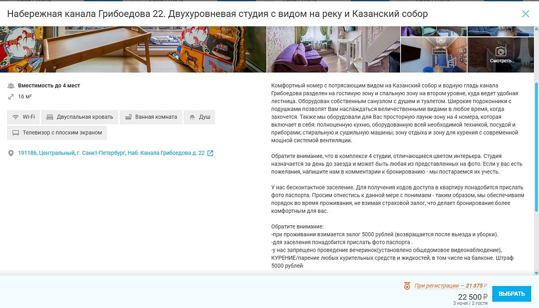 Комфортный номер с потрясающим видом на Казанский собор и водную гладь канала Грибоедова разделен на гостиную зону и спальную зону на втором уровне, куда ведет удобная лестница. Оборудован собственным санузлом с душем и туалетом. Широкие подоконники с подушками позволят Вам наслаждаться величественными видами в любое время, когда захочется. Также мы оборудовали для Вас просторную лаунж-зону на 4 номера, которая включает в себя: полноценную кухню, оборудованную всей необходимой техникой, посудой и приборами; стиральную и сушильную машины; зону отдыха и зону для курения с современной мощной системой вентиляции. Обратите внимание, что в комплексе 4 студии, отличающиеся цветом интерьера. Студия назначается за день до заезда и может быть любая из представленных на фото. Если у вас есть пожелания, напишите нам в комментарии к бронированию - мы постараемся их учесть. У нас бесконтактное заселение. Для получения кодов доступа в квартиру понадобится прислать фото паспорта. Просим отнестись к данной мере с понимаем - таким образом, мы обеспечиваем порядок во время проживания, не взимая страховой залог, что делает бронирование более комфортным для вас. Обратите внимание: -при проживании взимается залог 5000 рублей (возвращается после выезда и уборки). -для заселения понадобится прислать фото паспорта . -у нас запрещено проведение вечеринок(установлено общедомовое видеонаблюдение), КУРЕНИЕ/парение любых курительных средств и жидкостей, в том числе на балконе. Штраф 5000 рублей Добро пожаловать!Услуги и удобства