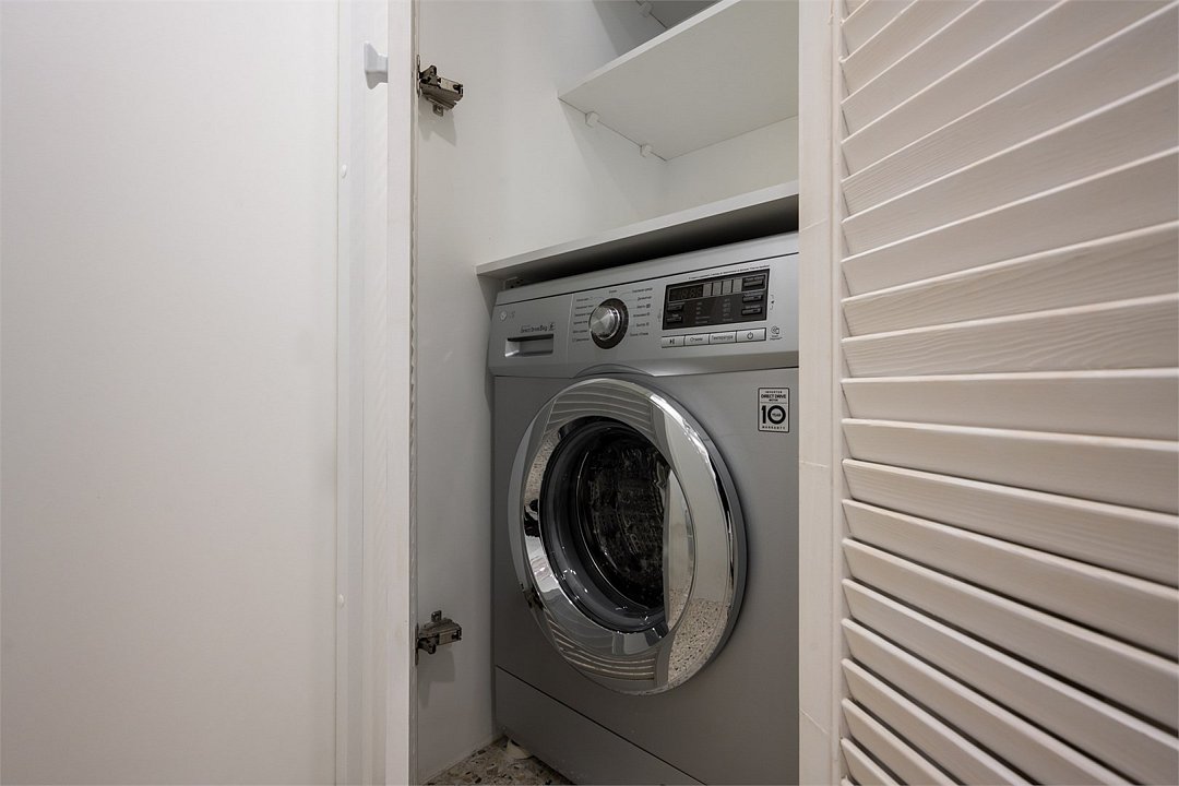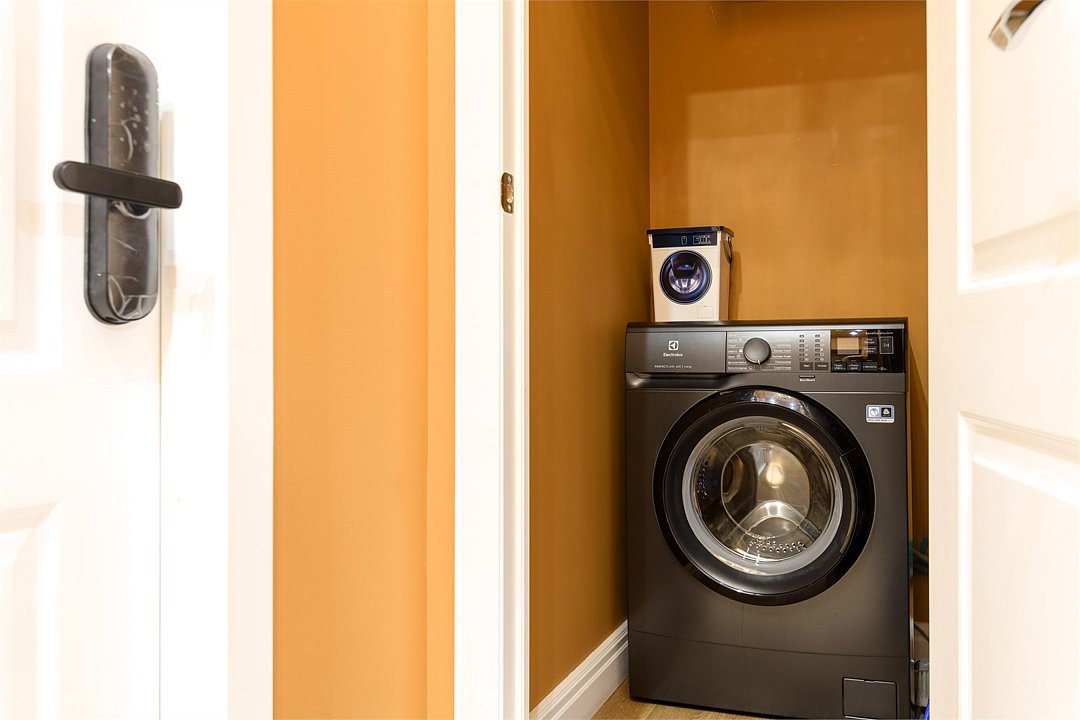 Wi-Fi, интернет, холодильник, кондиционер, фен, электронные замки, плита для приготовления пищи, микроволновая печь, утюг, ванна, теплый пол, кровать «Queen size», гладильная доска, гардеробная, обеденный стол, кухня, набор посуды, посудомоечная машина, стиральная машина, чайник, унитаз, вид во двор, кухонная посуда, кухонная утварь, столовые приборы, стул, туалет, диван-кровать, раскладной диван, телевизор со Smart TV, морозильная камера, духовкаВ квартире