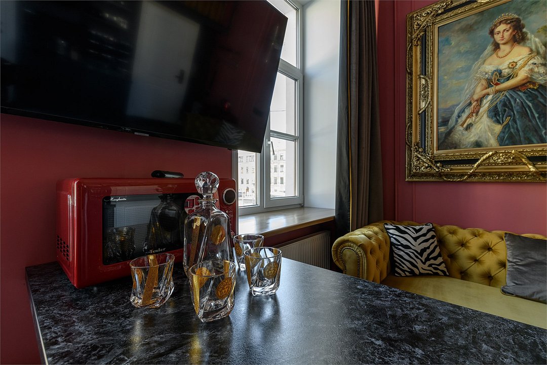 Двухуровневые тематические квартиры-студии вместимостью до 3 чел располагаются на 2-ом этаже, в историческом здании, в домашнем мини апарт-отеле на 6 номеров, прямо над консульством Румынии. Справа, за углом здания - Дворцовая площадь с Эрмитажем (200 метров). Закрытый, безопасный двор с видеонаблюдением. Вокруг множество кафе, ресторанов, бистро, атмосферных заведений. Студия оснащена всем необходимым для Вашего комфортного проживания. Самое сердце города, в окружении культовых достопримечательностей: Дворцовая пл., Исаакиевский собор, Адмиралтейство - всё в радиусе 300 метров. Метро 4 мин.Услуги и удобства
