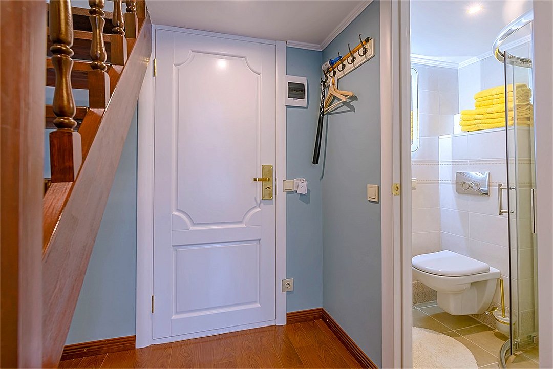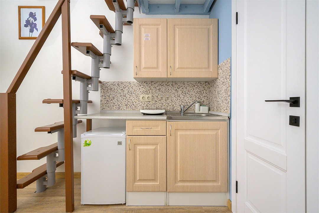 Каждый номер предлагает вам все самое необходимое для комфортного отдыха. Здесь вы найдете отдельную ванную комнату с душевой кабиной, фен и холодильник для ваших личных нужд (морозильник доступен в общей зоне). Каждая комната оборудована кондиционером, смарт-ТВ и беспроводным интернетом, который охватывает всю территорию, обеспечивая вам возможность оставаться на связи в любое время. В общей зоне вы найдете стиральную машину, что делает ваш отдых еще более удобным. Мы гордимся бесперебойной системой подачи горячей и холодной воды, которая обеспечит вам максимальный комфорт. Общая кухня площадью 14.5 квадратных метров оборудована встроенной индукционной плитой, духовым шкафом, микроволновой печью и посудомоечной машиной, а также большим двухкамерным холодильником. Вся необходимая утварь для готовки всегда под рукой, а измельчитель мусора значительно упростит процесс уборки. Здесь также есть уютная зона для приема пищи с большим обеденным столом и стульями, где вы сможете наслаждаться общением с близкими. Для вашего удобства в общей зоне находятся утюг, гладильная и сушильная доска, что позволит вам всегда выглядеть безупречно. Обратите внимание, что на территории нет бесплатной стоянки, но это не помешает вам насладиться пребыванием. Добро пожаловать в наш дом, где комфорт и уют ждут вас!Большой Проспект П.С. 6-8. Двухуровневая студия "Свиридов" для троих гостей