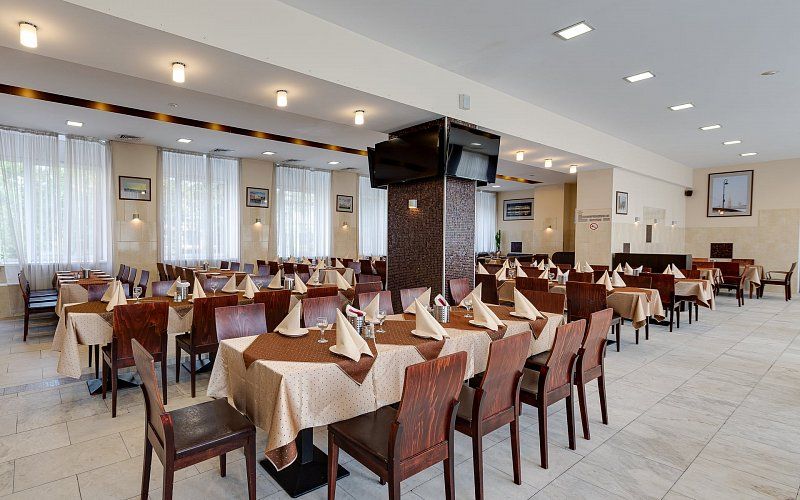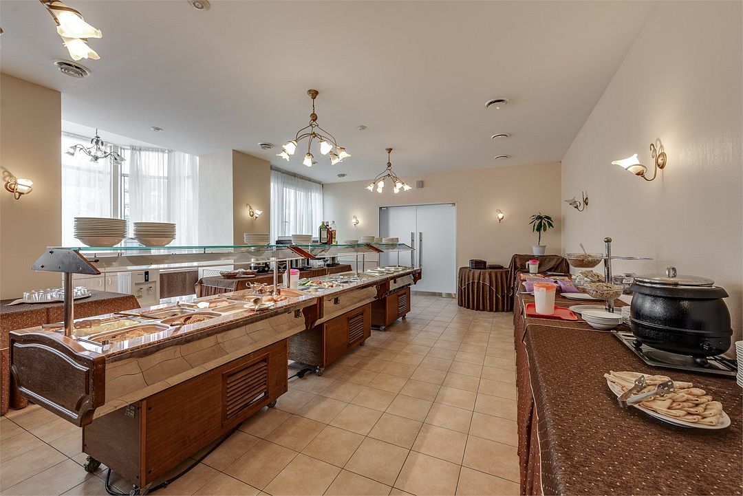 Завтрак по системе «Шведский стол» ежедневно сервируют в ресторане «Изумруд» с семи до десяти утра. Меню включает все необходимое для сытного начала дня: нарезку, молочные продукты, каши, гарниры, овощи и десерты. Особое внимание уделено свежести и качеству — от ветчины и сыров до домашнего варенья и зернового кофе.