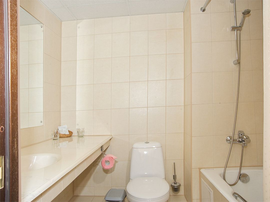 - с ванной или душевой кабиной