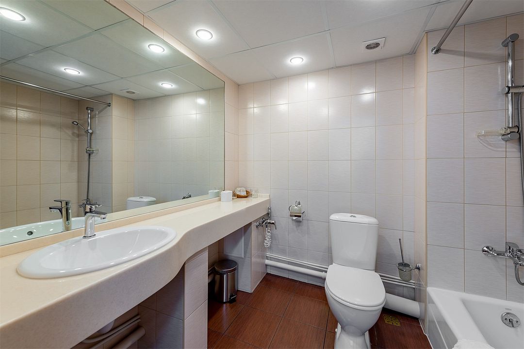 телевизор, спутниковое телевидение, кабельное телевидение, Wi-Fi, телефон, светильник, настольные лампы, фен, ванная комната, душевая кабина, ванна, санузел, дополнительный санузел, биде, халаты, банные полотенца, тапочки, гигиенические средства, косметические средства, кровать «King size», две односпальные кровати, диван, кресла, стулья, шкаф для одежды, вешалки, журнальный столик, письменный стол, зеркало, две комнаты, чайный набор, обслуживание номеров, сейф, чайник, унитаз, раковина, ковровое покрытие, отопление, кулер на этаже, раздельный санузел, две спальни, вид во двор, стаканы, туалет, мини-холодильник, номер для некурящих, чайная станция, межкомнатная дверь, уборка номера, услуги прачечной (платно), вешалки-плечики, мылоВ гостиничном номере