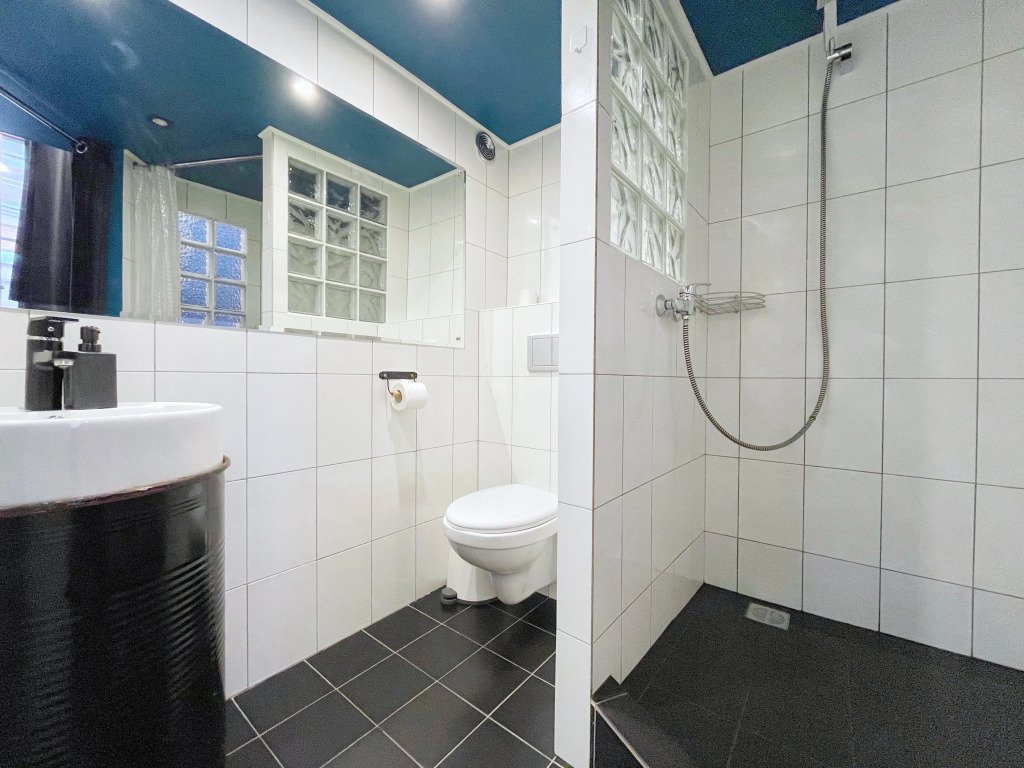 В общем доступе на каждом этаже есть раздельные санузлы; на первом этаже находится большая кухня. Рядом с кухней расположена прачечная, где гости могут воспользоваться стиральной машиной и гладильными принадлежностями.
