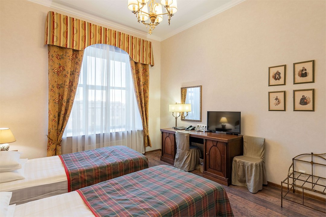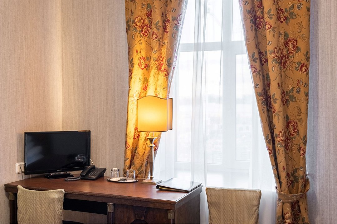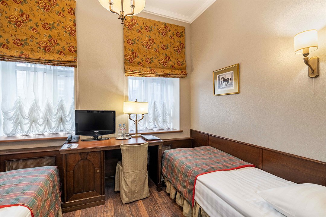 Однокомнатный номер с раздельными или совмещенными кроватями по выбору гостей. Площадь номера: 14-16 кв.м. В каждом номере есть рабочая зона. Оснащение стандартного номера включает: удобные кровати, тумбочки, столы, стулья, шкафы для одежды, функциональное освещение, телевизоры с жидкокристаллическим экраном, сейфы, беспроводной доступ в Интернет, банные принадлежности, халаты, тапочки, фен, телефон.Услуги и удобства