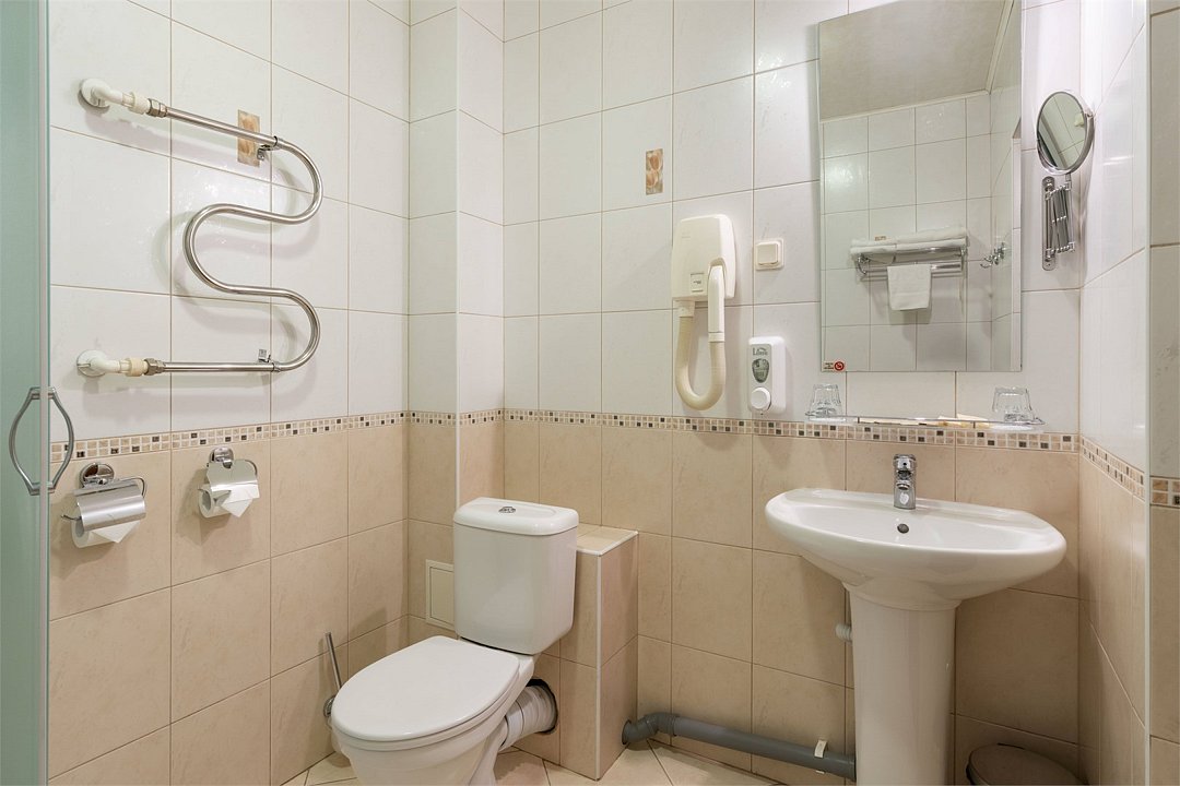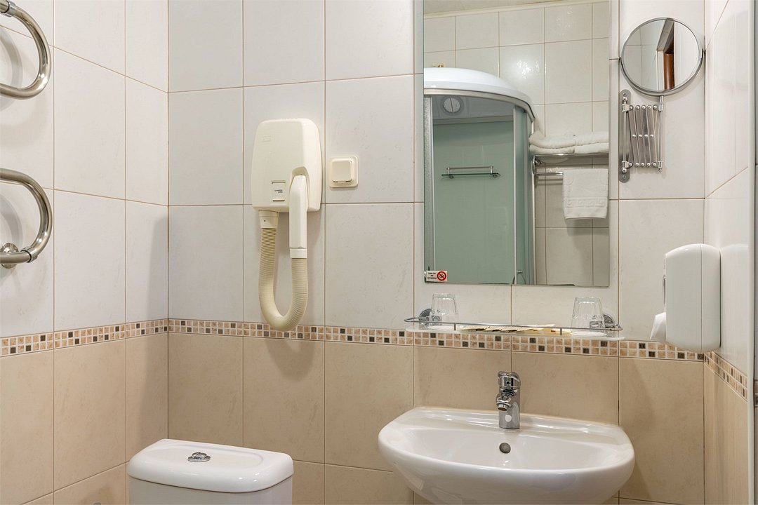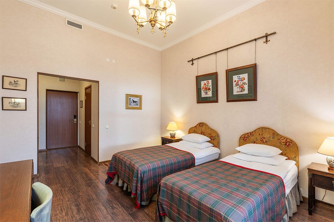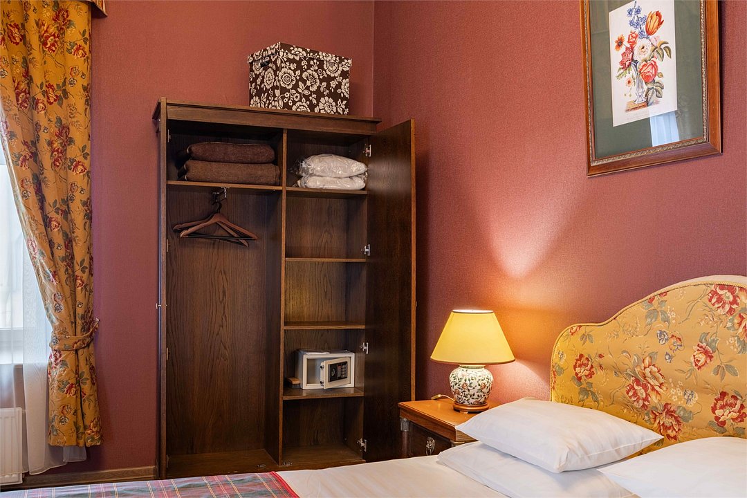Wi-Fi, телефон, светильник, настольные лампы, фен, вентилятор, будильник, электронные замки, утюг, обогреватель, ванная комната, душевая кабина, гидромассажный душ, санузел, банные принадлежности, халаты, банные полотенца, тапочки, гигиенические средства, косметические средства, две односпальные кровати, гипоаллергенное белье, гладильная доска, ортопедический матрас, тумбы, шкаф для одежды, гардеробная, вешалки, письменный стол, багажная тумба, зеркало, ковер, мебельный гарнитур, мини-бар, письменные принадлежности, обслуживание номеров, сейф, раковина, косметическое зеркало, отопление, душ, кулер на этаже, вид во двор, ламинат, стаканы, стул, туалетные средства, туалет, внутренний телефон, телевизор с плоским экраном, мини-холодильник, москитная сетка, гостиничная парфюмерия, номер для некурящих, без питомцевВ номере