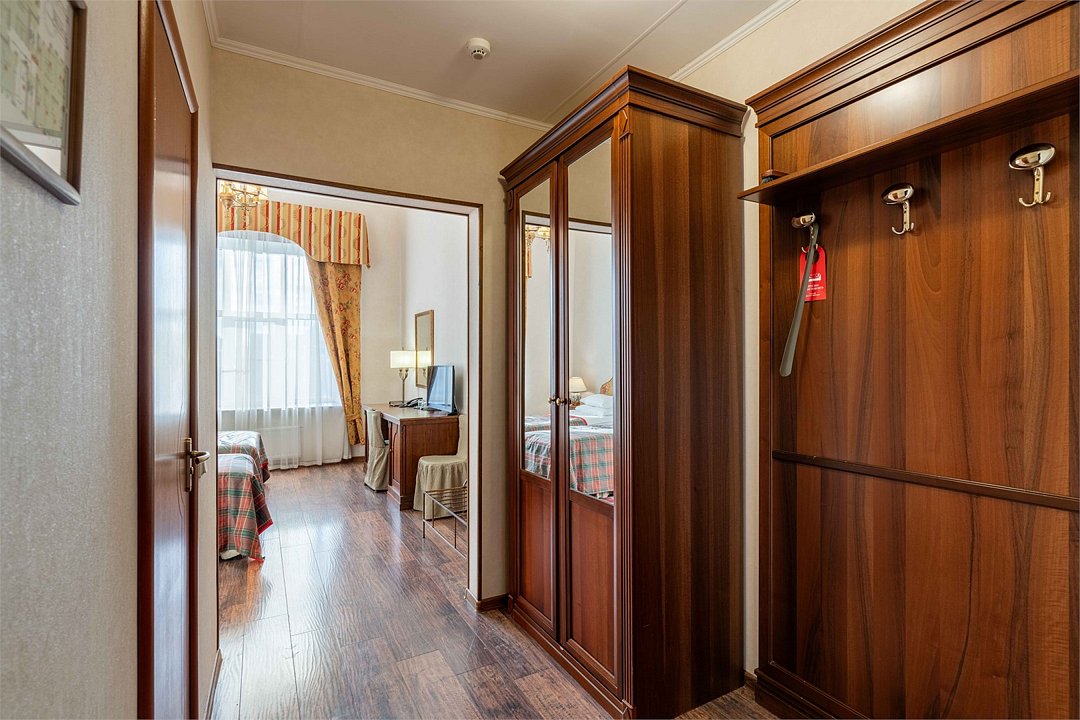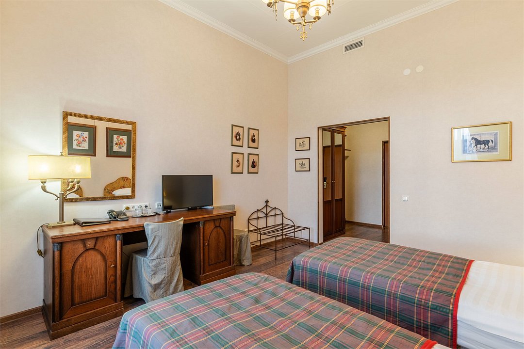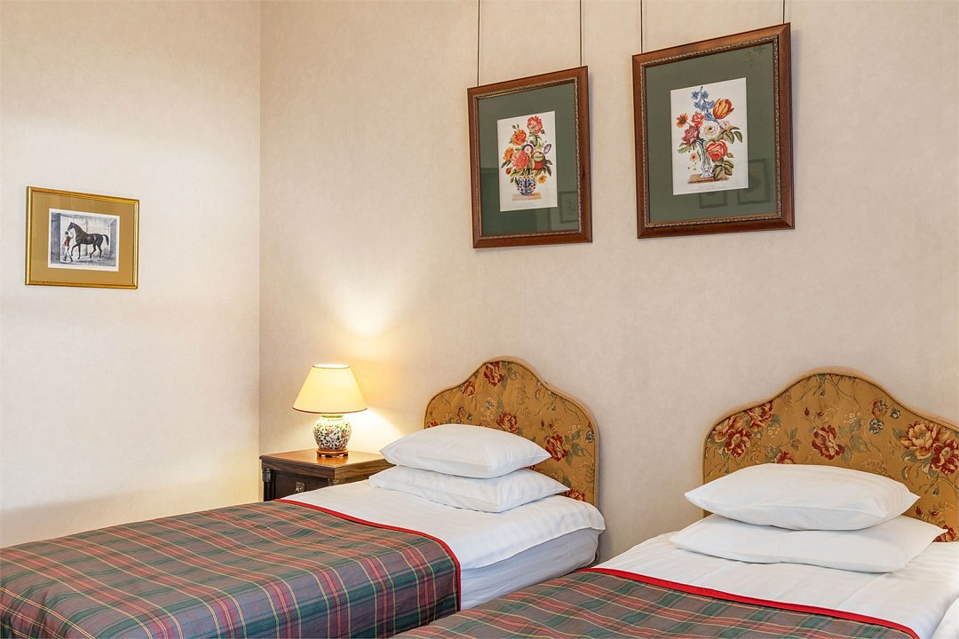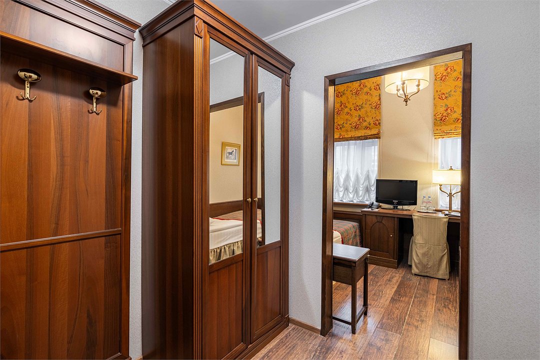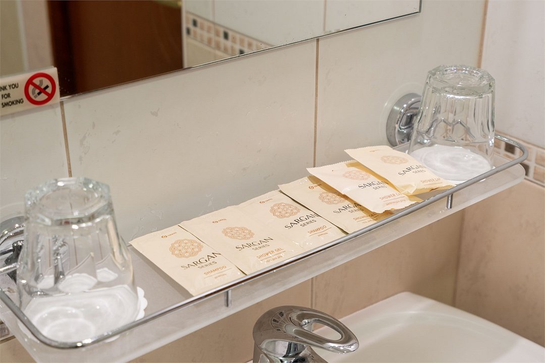 Wi-Fi, телефон, светильник, настольные лампы, фен, вентилятор, будильник, электронные замки, утюг, обогреватель, ванная комната, душевая кабина, гидромассажный душ, санузел, банные принадлежности, халаты, банные полотенца, тапочки, гигиенические средства, косметические средства, две односпальные кровати, гипоаллергенное белье, гладильная доска, ортопедический матрас, тумбы, шкаф для одежды, гардеробная, вешалки, письменный стол, багажная тумба, зеркало, ковер, мебельный гарнитур, мини-бар, письменные принадлежности, обслуживание номеров, сейф, раковина, косметическое зеркало, отопление, душ, кулер на этаже, вид во двор, ламинат, стаканы, стул, туалетные средства, туалет, внутренний телефон, телевизор с плоским экраном, мини-холодильник, москитная сетка, гостиничная парфюмерия, номер для некурящих, без питомцевВ номере