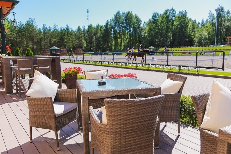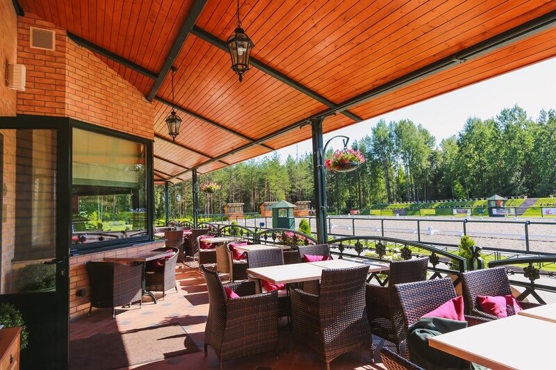 Семейный отдыхДостоинстваПрекрасное место, расположенное рядом с городом, есть удобная парковка. Замечательный ресторан, окна которого выходят на крытый и открытый манежи, где можно увидеть лошадей в конюшнях <3 Атмосфера спокойствия и тишины, персонал отличается тактичностью и профессионализмом.