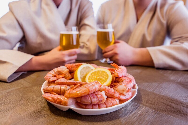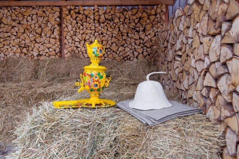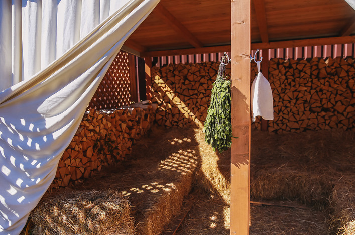 В аренду комплекса входит набор банных принадлежностей: тапочки, полотенца, простыни, халаты, банные шапки и косметика. Также час угостят чаем на травах.