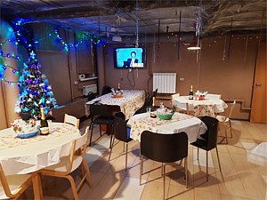 Есть уютная столовая с телевизором, санузлом и кухней, где предлагаются завтраки, обеды и ужины.
