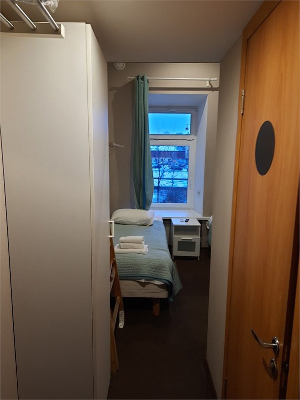 - ежедневно вынос мусора, уборка номера, обновляются туалетная бумага, чай, сахар, кофе (кофемашина в столовой);