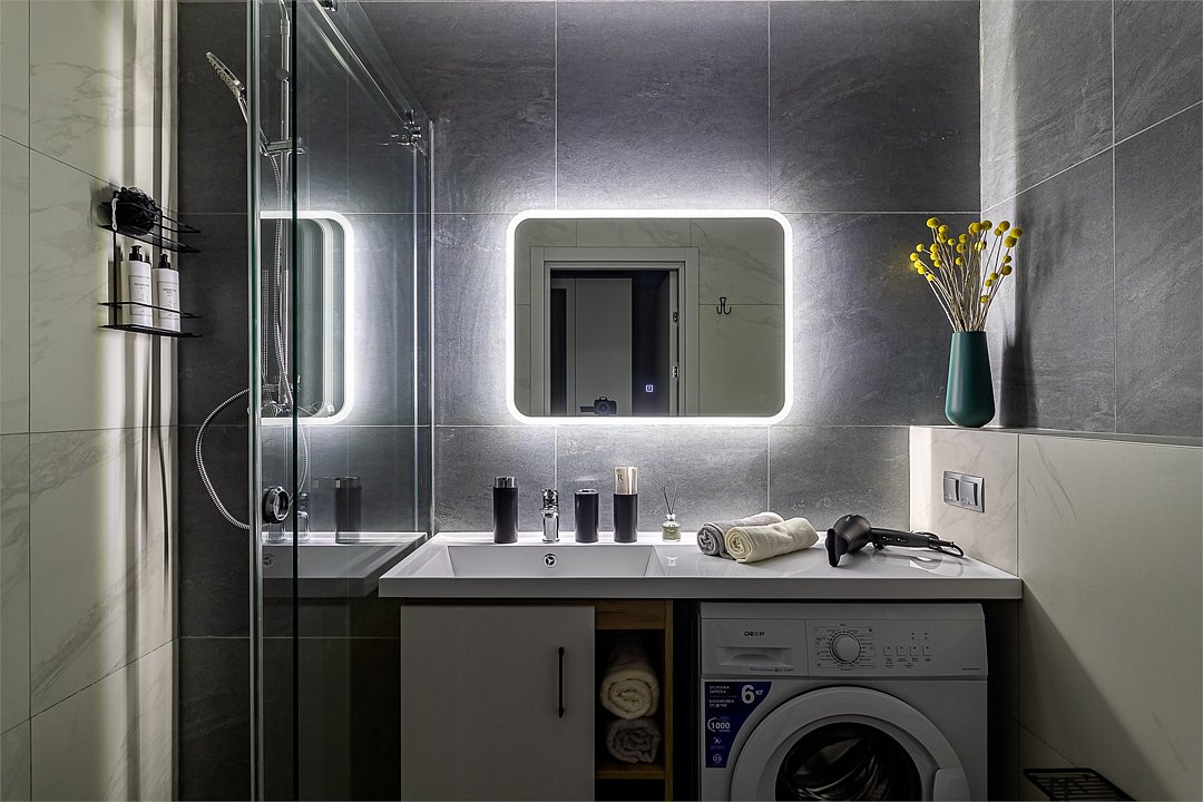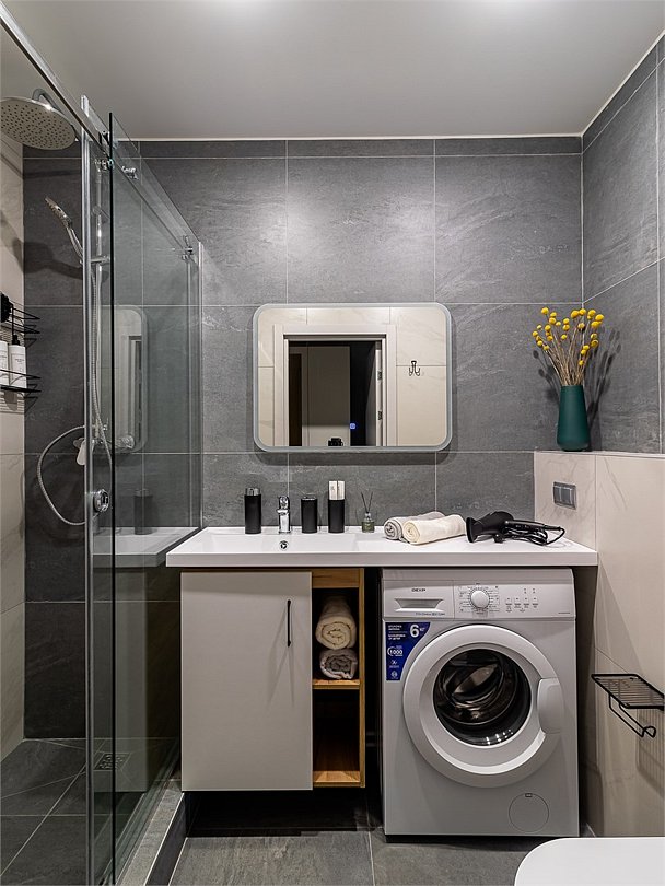 телевизор, Wi-Fi, холодильник, светильник, фен, электронные замки, плита для приготовления пищи, микроволновая печь, утюг, душевая кабина, санузел, водонагреватель, тапочки, гигиенические средства, косметические средства, двуспальная кровать, гладильная доска, ортопедический матрас, диван, тумбы, стулья, шкаф для одежды, гардеробная, вешалки, обеденный стол, зеркало, кухня, чайный набор, набор посуды, стиральная машина, чайник, унитаз, раковина, мягкая мебель, косметическое зеркало, отопление, вид на город, вид во двор, ламинат, высокие потолки, кухонная посуда, стаканы, столовые приборы, туалетный столик, стол, туалетный столик, туалетные средства, туалет, сушилка для белья, цифровое тв, раскладной диван, телевизор с плоским экраном, мини-кухня, телевизор со Smart TV, рабочий стол, антибактериальное средство для рук, холодильный шкаф, онлайн-регистрация до заезда, морозильная камера, двуспальный раскладной диван-кровать, мылоВ апартаментах