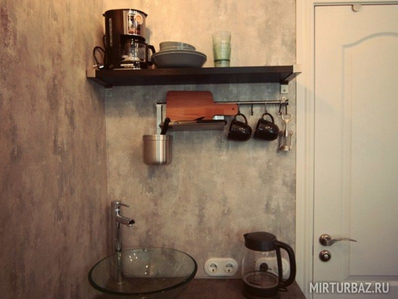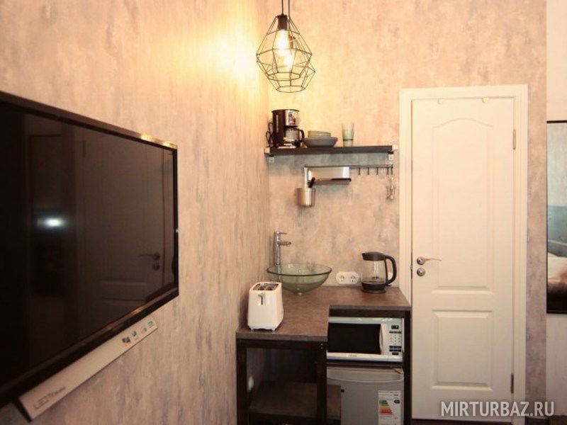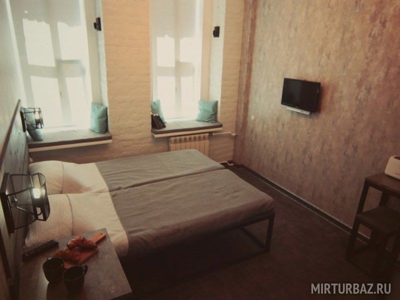 В апарт-отеле 4 двухместных номера, представляющих собой небольшие студии, расположенные на первом этаже дома №5 по Исполкомской улице. Открытие отеля произошло совсем недавно, поэтому гостей порадует свежий ремонт. К поддержанию чистоты здесь относятся очень ответственно. Интерьер выдержан в простом и комфортном стиле “лофт”: кирпичные стены, натуральные материалы, теплая цветовая гамма. Все окна выходят во двор, а значит вас не разбудит шум утреннего транспорта. В каждом номере установлена широкая двуспальная кровать трансформер (можно разделить на две односпальные) с ортопедическими матрасом. Оригинальной чертой являются широкие подоконники, на которых оборудовано место для отдыха. У вас будет возможность расслабиться перед телевизором, а также подключиться к местному вай-фаю. Для хранения вещей предусмотрен платяной шкаф с вешалками.