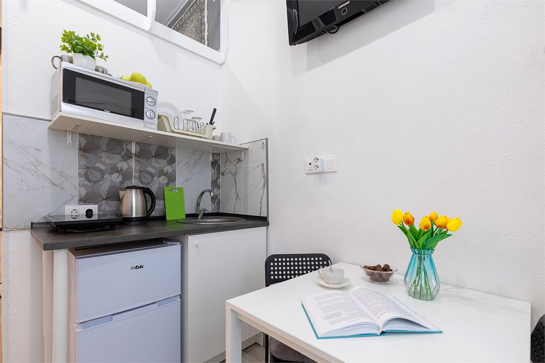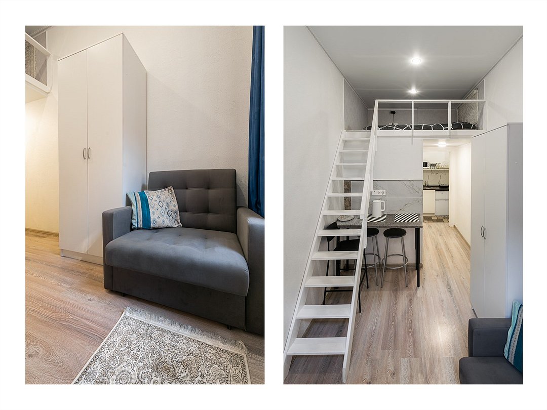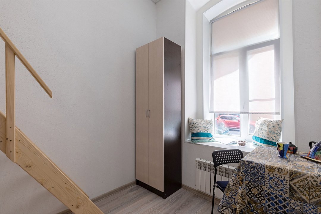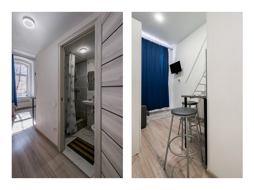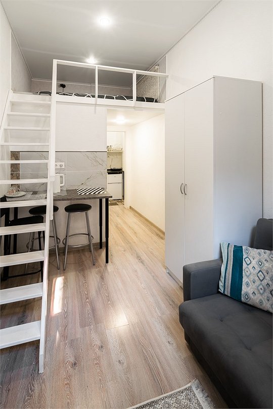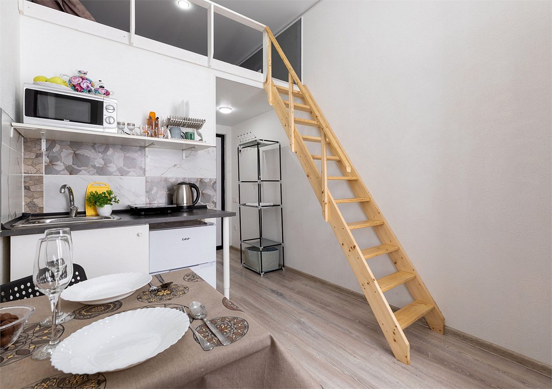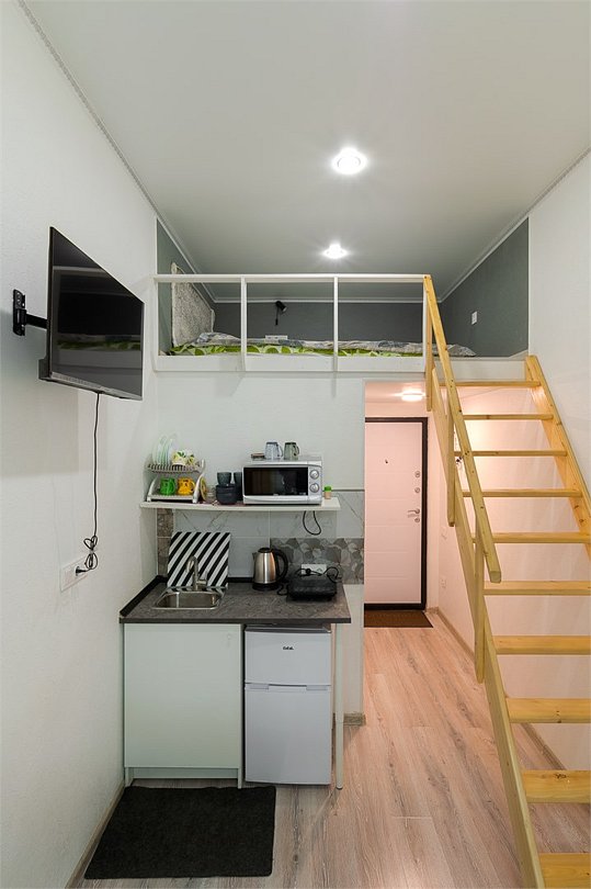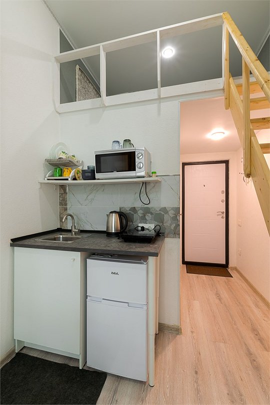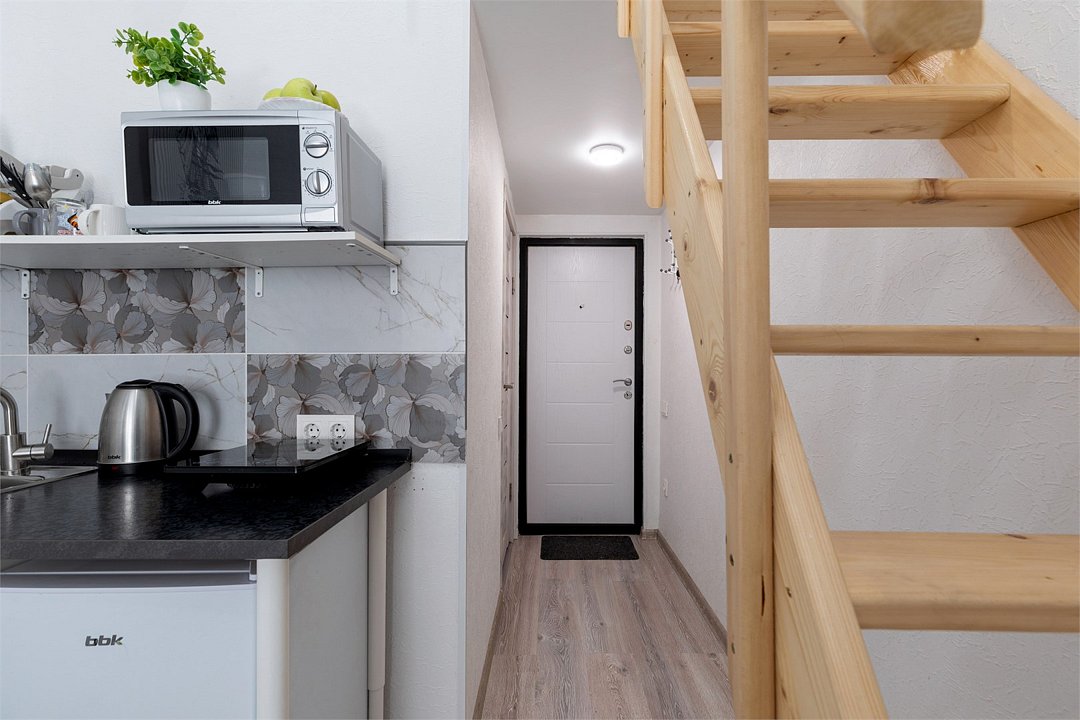 Уютная двухуровневая студия. С железной входной дверью,со вторым ярусом на 2 человека на Петроградской стороне.Умный цифровой замок для входа в помещение, объединяющее 5 студий.Есть все необходимое для комфортного отдыха и работы из дома,санузел с вытяжкой. На первом ярусе все необходимое для приготовления пищи:индукционная печь,микроволновая печь,электрический чайник,посуда,холодильник с отдельной морозильной камерой.Второй ярус позволяет сделать сон комфортным за счет большого спального места,уютных светильников и ночников.Услуги и удобства