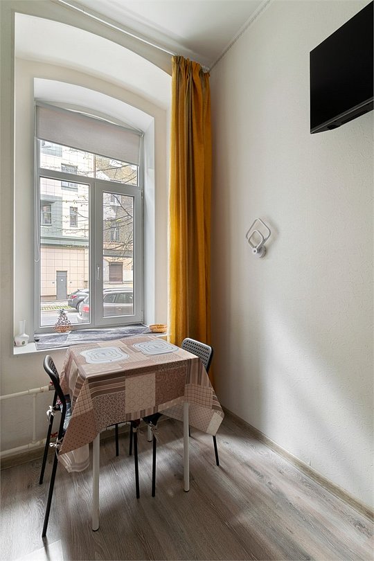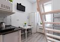 телевизор, Wi-Fi, холодильник, электронные замки, микроволновая печь, утюг, душевая кабина, водонагреватель, банные полотенца, кровать «King size», гладильная доска, стулья, шкаф для одежды, зеркало, набор посуды, стиральная машина, чайник, раковина, душ, вид на город, вид во двор, ламинат, высокие потолки, столовые приборы, стиральная машина и сушилка, стол, туалетные средства, туалет, цифровое тв, кухонный уголок, номер для некурящих, электронный консьерж 24/7, онлайн-регистрация до заезда, можно с питомцамиВ студии