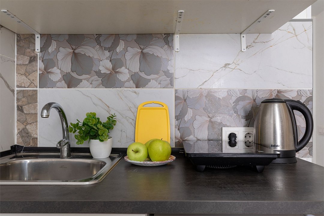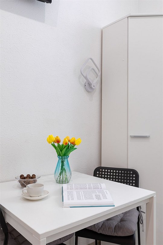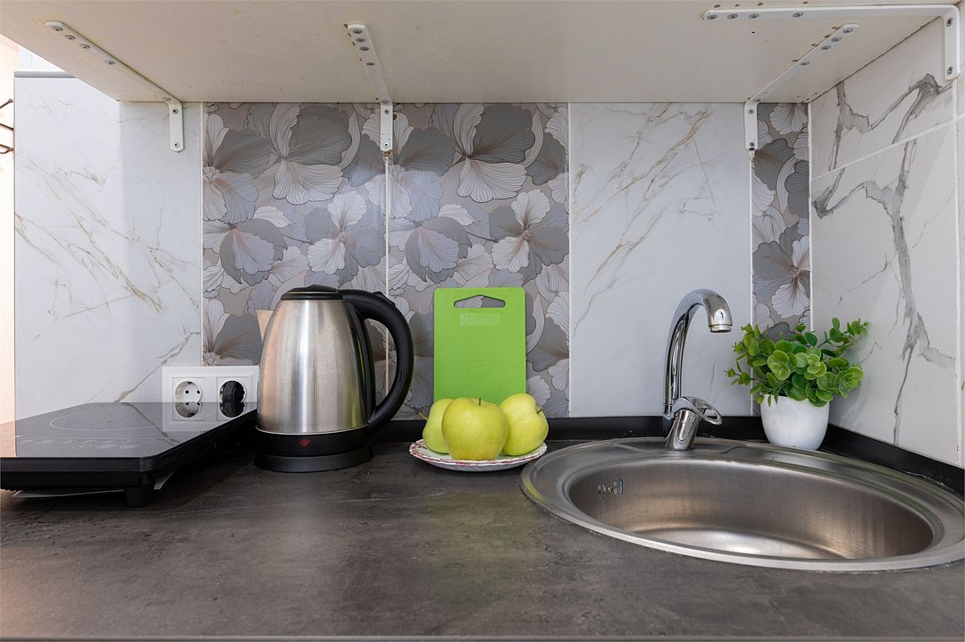 Wi-Fi, интернет, электронные замки, санузел, кровать «King size», стулья, зеркало, чайник, душ, вид на город, ламинат, высокие потолки, столовые приборы, стул, стол, туалетные средства, диван-кровать, мини-кухня, телевизор со Smart TV, онлайн-регистрация, можно с питомцамиВ студии
