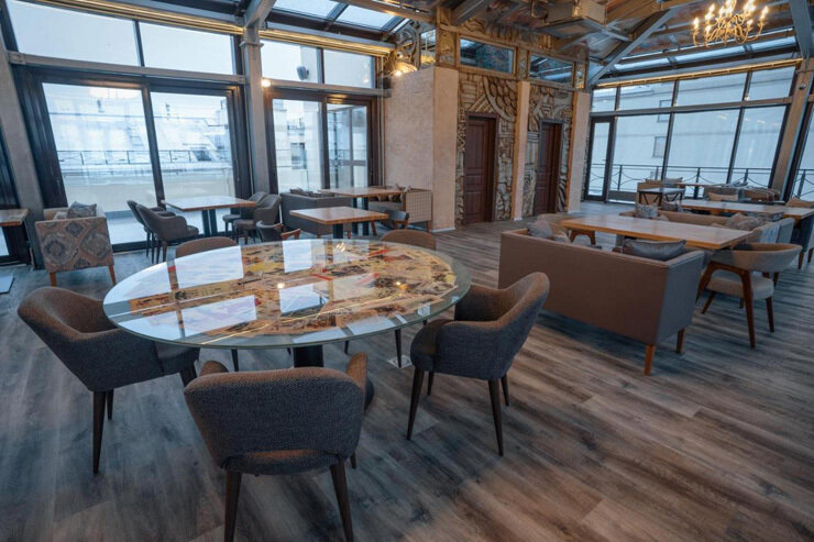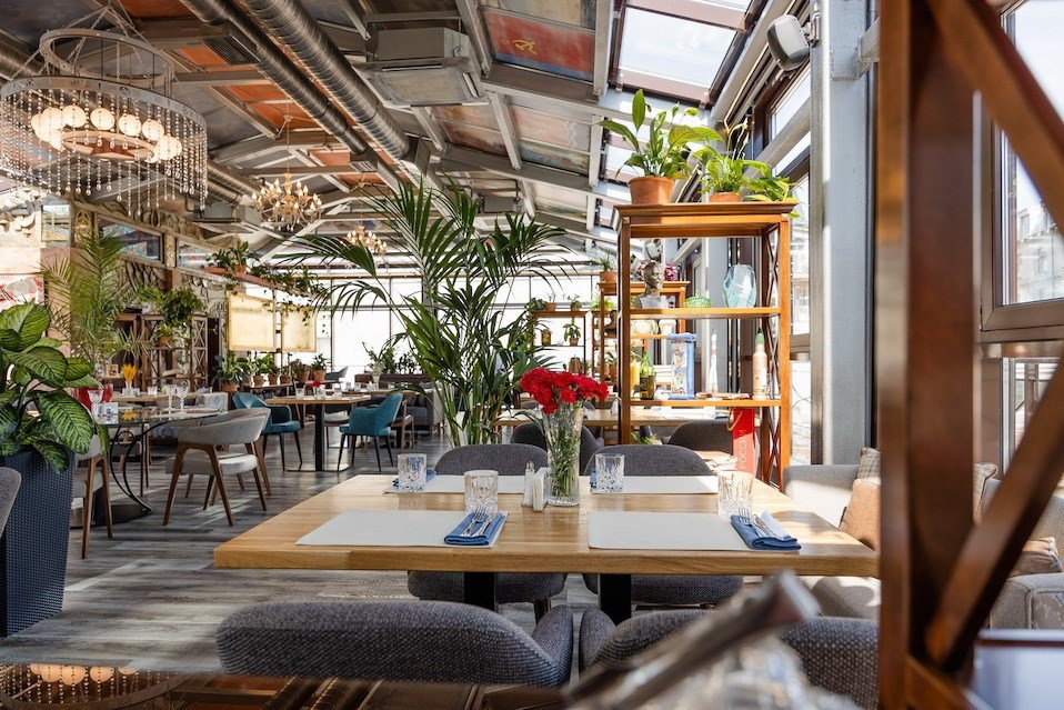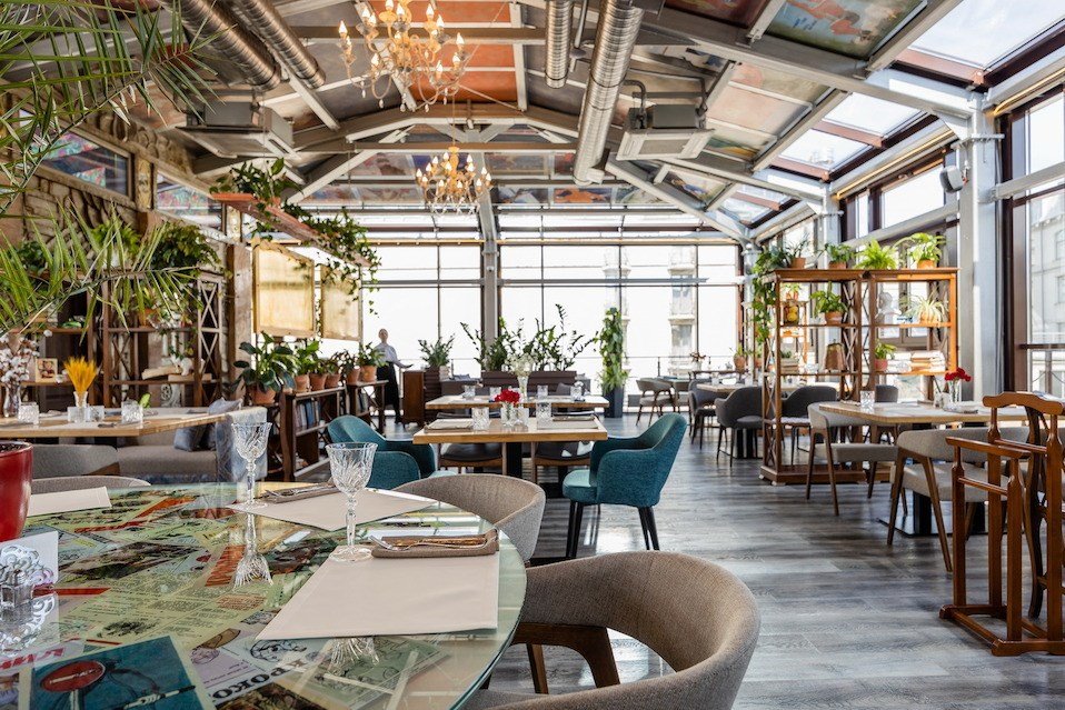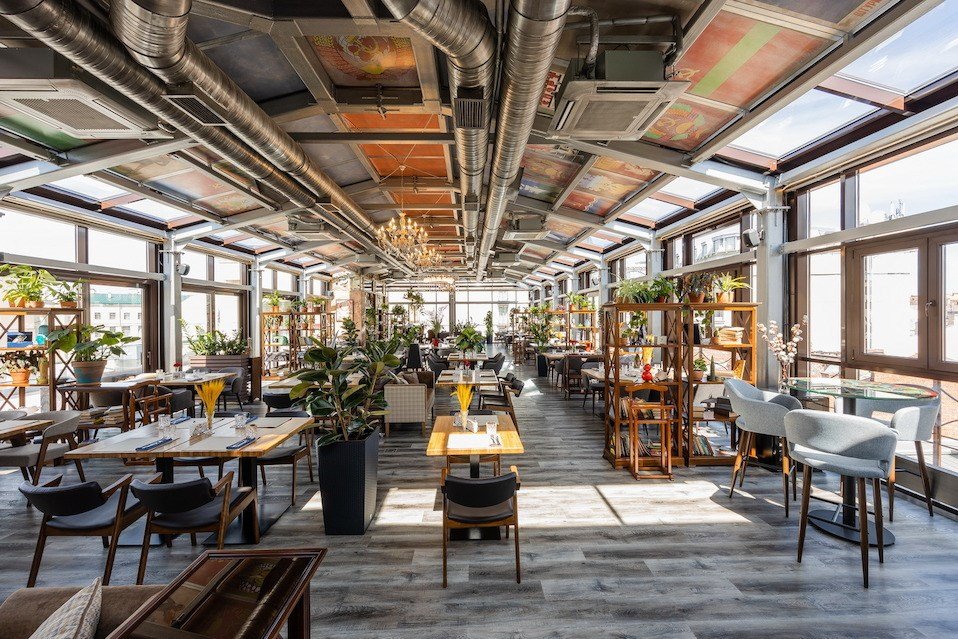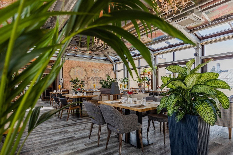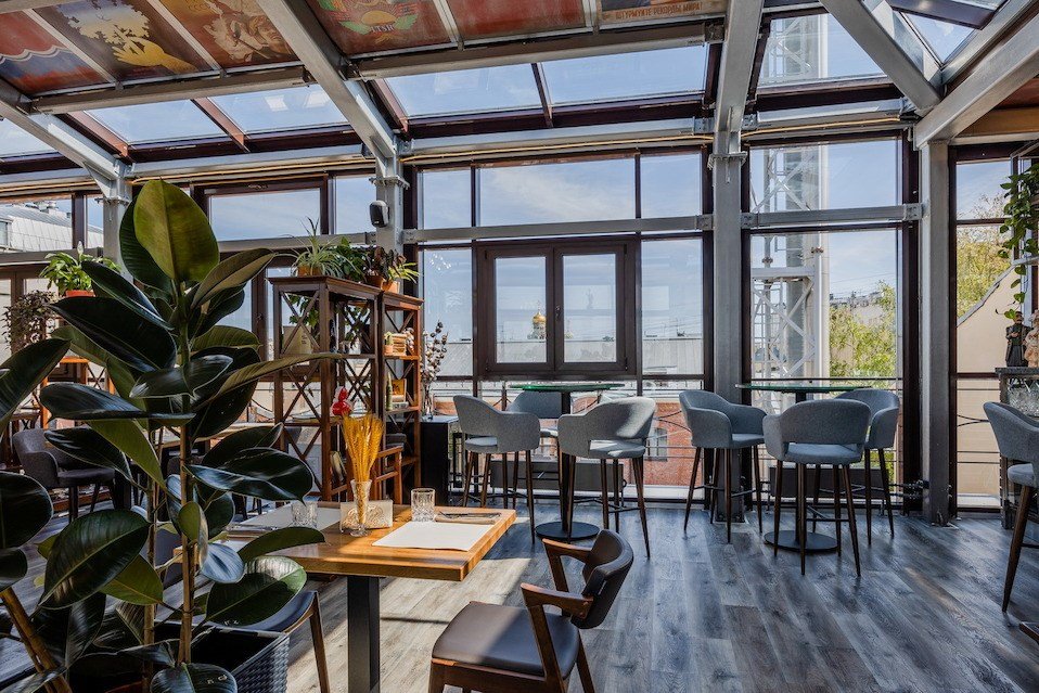 Панорамный ресторан со своим видом на Спас на Крови, Александрийский столп и Петербургские крыши – располагается на 5 этаже комплекса Мойки 26.