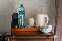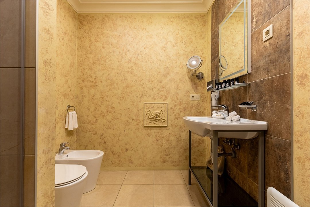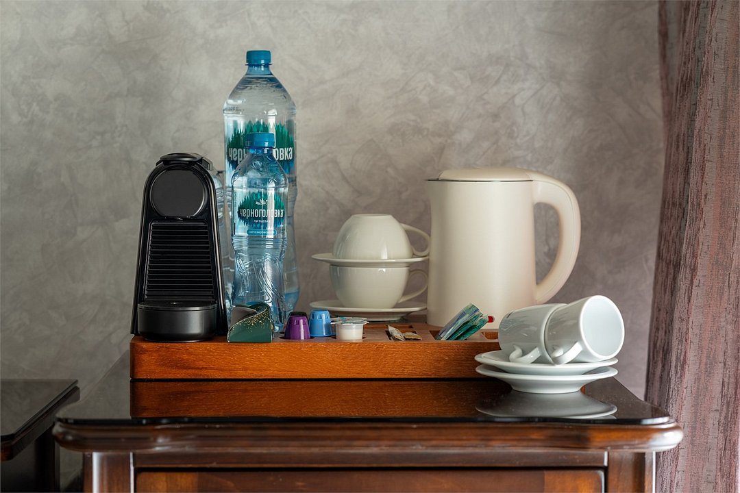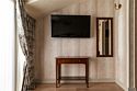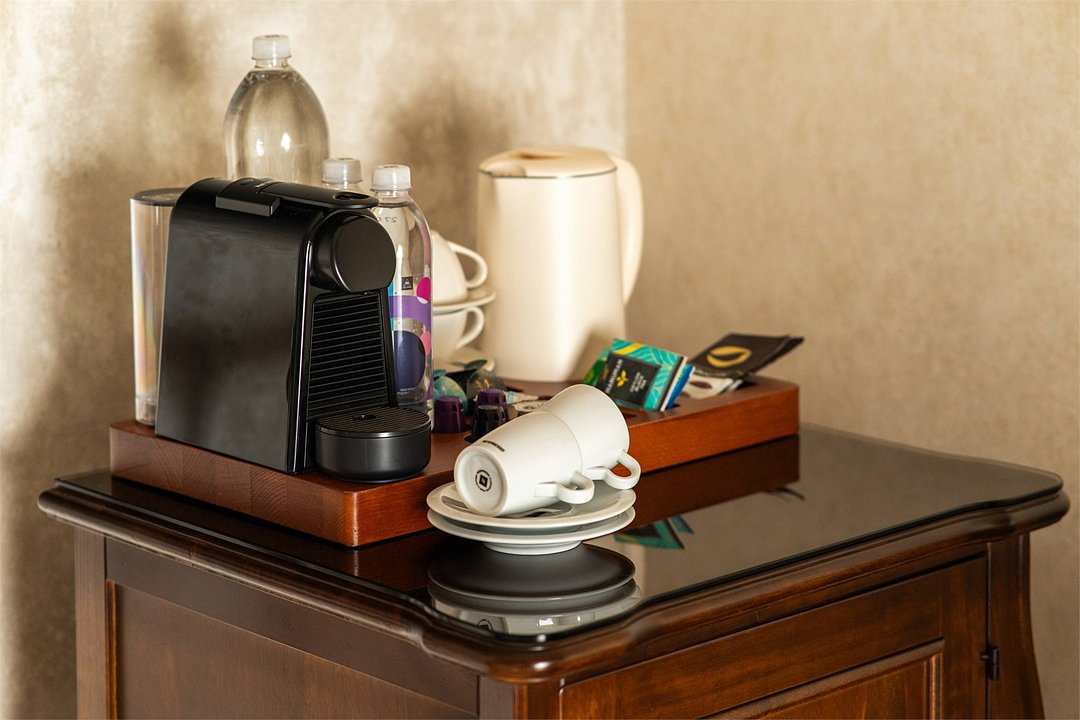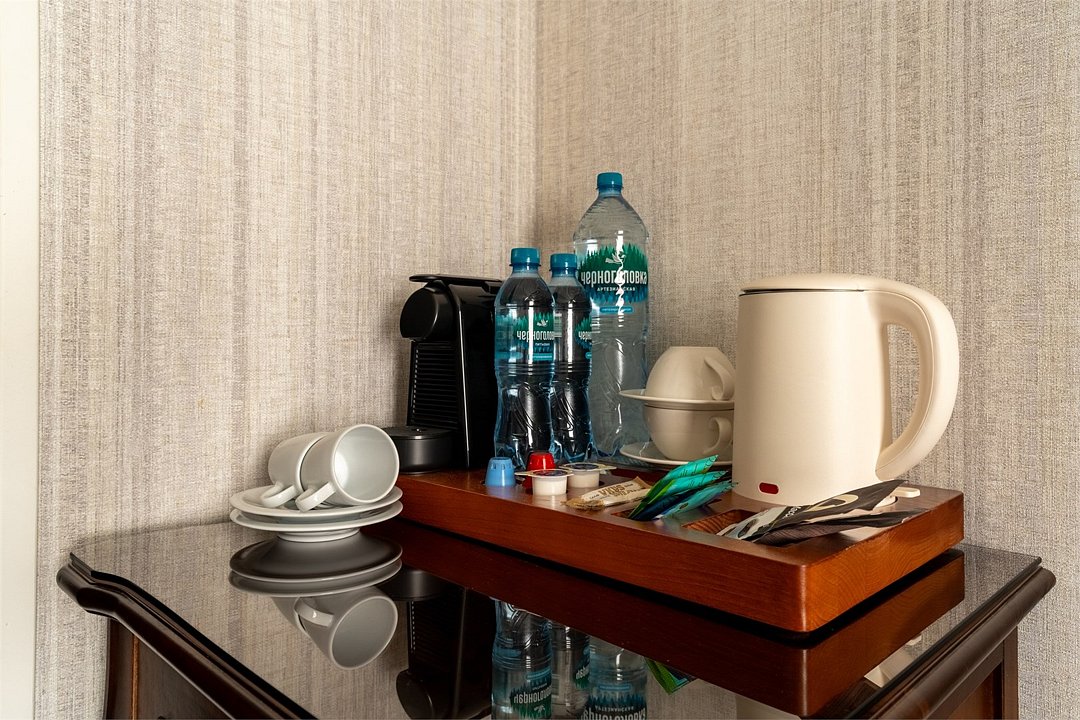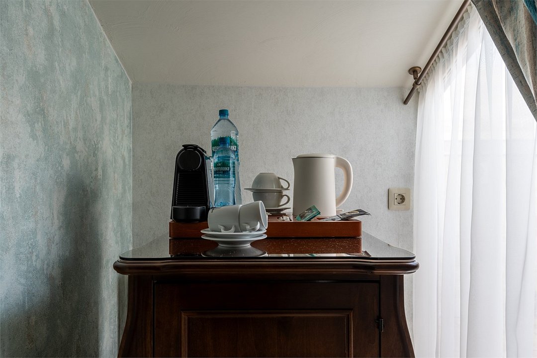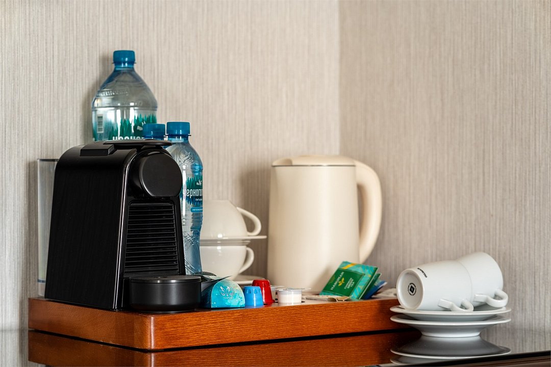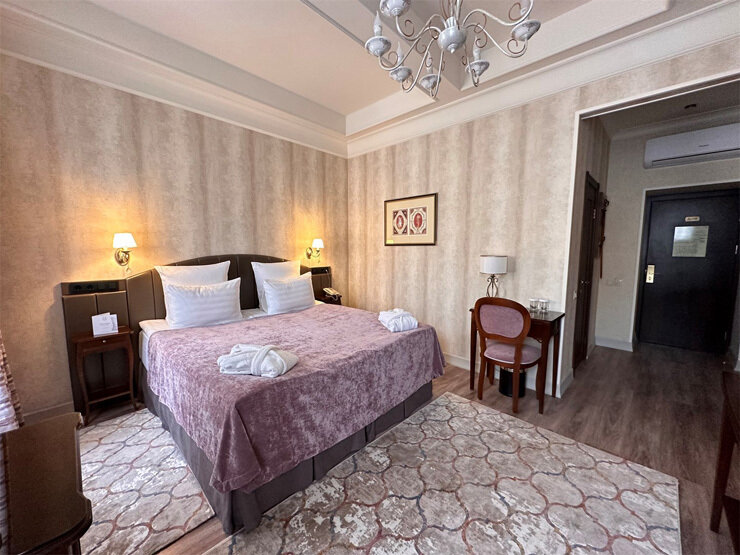 спутниковое телевидение, кабельное телевидение, интерактивное телевидение, Wi-Fi, кондиционер, фен, электронные замки, кофемашина, утюг, биде, банные принадлежности, халаты, тапочки, гигиенические средства, косметические средства, двуспальная кровать, две односпальные кровати, гладильная доска, тумбы, стулья, шкаф для одежды, вешалки, письменный стол, багажная тумба, зеркало, ковер, мини-бар, чайный набор, набор посуды, обслуживание номеров, сейф, косметическое зеркало, питьевая вода, душ, вид во двор, меню подушек, цифровое тв, внутренний телефон, мини-холодильник, телевизор со Smart TV, номер для некурящих, чайная станция, без питомцевВ номере