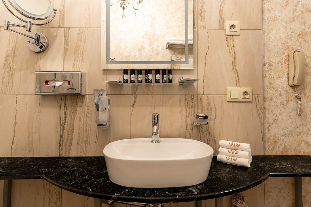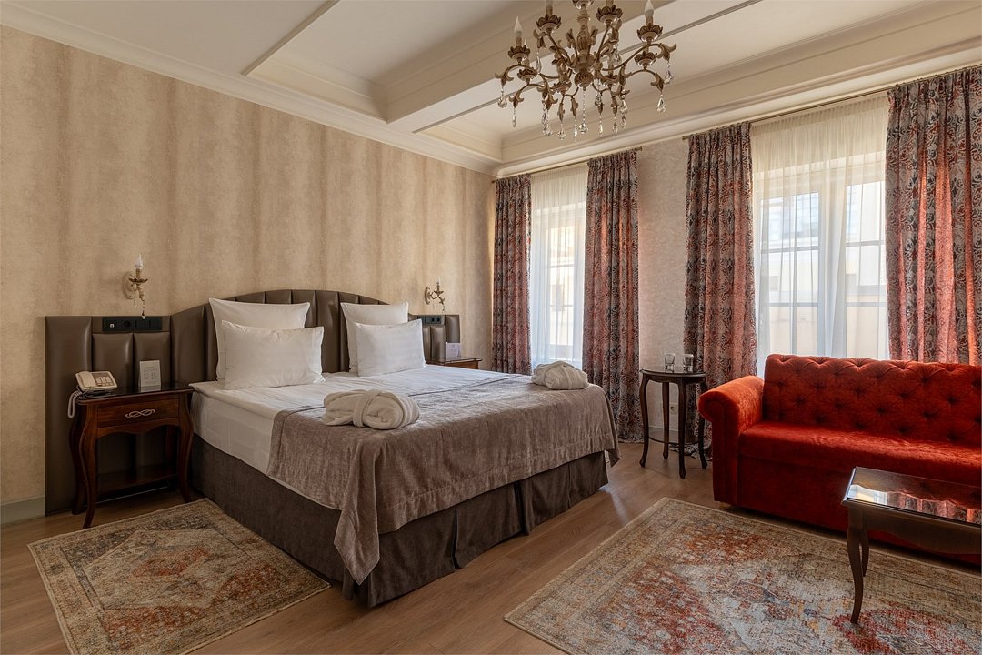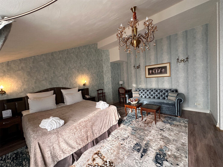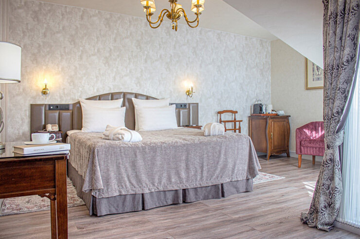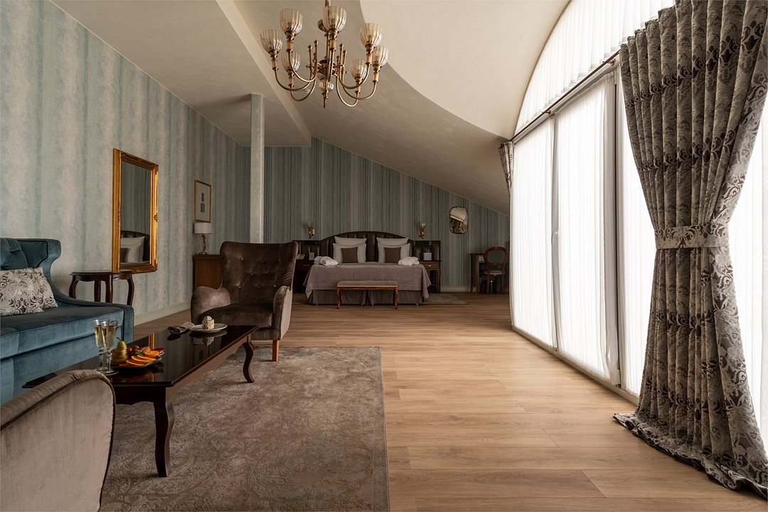 Номер А503 можно с гордостью назвать визитной карточкой Отеля "Мария": интерьер и наполнение номера вызывают восторг! Этот номер будет отличным сопровождением к Вашему проживанию в памятные даты, в день свадьбы или день рождения.