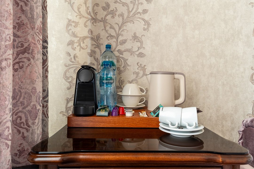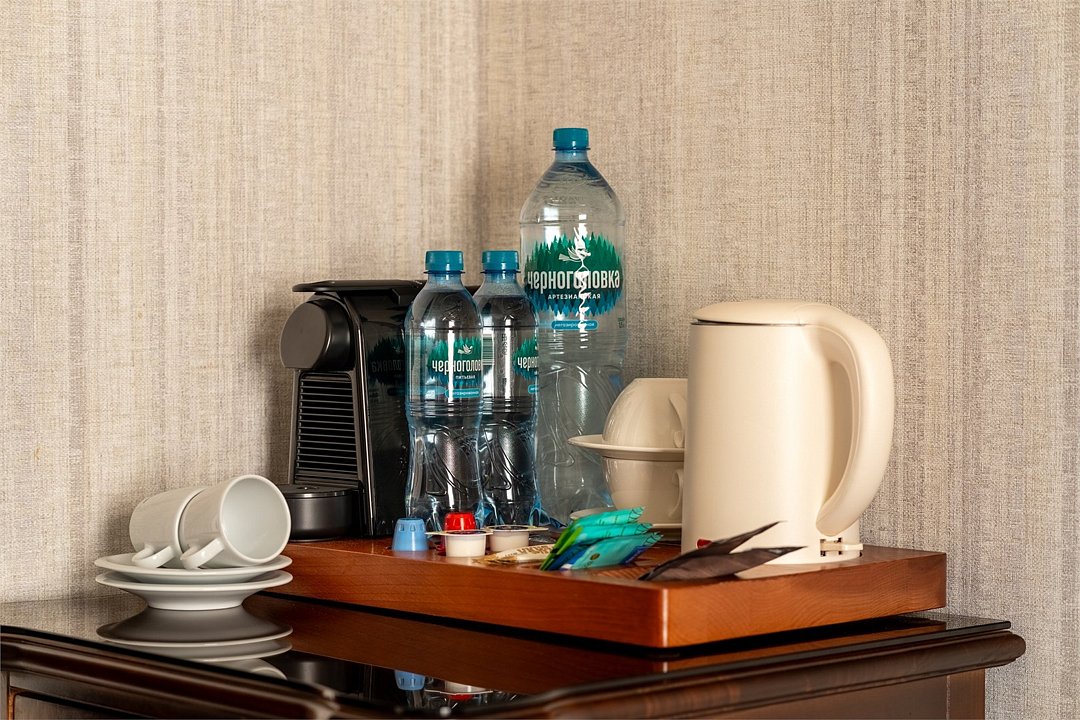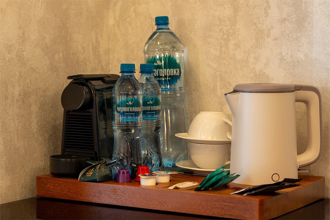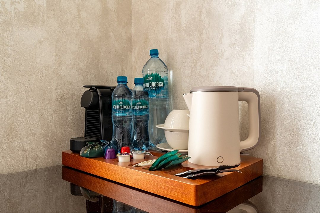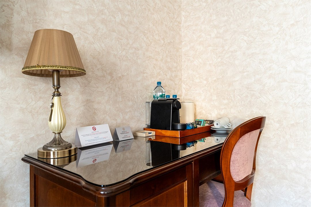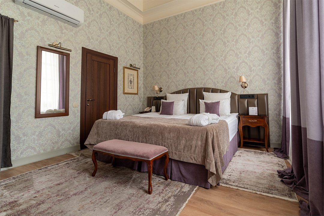 Просторный и уютный номер, который создан для вашего комфорта и вдохновения. Интерьер выполнен в мягких оттенках серого или бежевого, дополненных яркими акцентами бордового, пыльно-розового, синего, фиолетового или горчичного цветов. Эти изысканные детали создают теплую и стильную атмосферу. Оснащение номера: • Кровать king size • Письменный стол для работы и отдыха • Шкаф с плечиками и сейфом для ваших вещей • Мягкая зона с диваном • Smart TV для просмотра любимых фильмов и передач • Чайно-кофейная станция с капсульным кофе, чаем и сахаром • Расширенный косметический набор, мягкие халаты и комплект полотенец Уборка – ежедневно, смена белья – раз в 2 дня. Чайно-кофейный набор пополняется ежедневно. При заезде - комплимент: безалкогольный мини-бар. По запросу предоставляются меню подушек и гладильные принадлежности (утюг, доска). Особенности: • Номера данного типа расположены на 2, 3, 4 этажах в литере А. • Кровать king size - трансформер, при совершении бронирования, пожалуйста, укажите тип кровати - одна двуспальная или две односпальные. • Один из номеров со скошенным потолком с мансардным окном.Услуги и удобства
