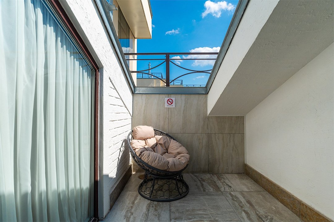 Просторная терраса номера с обзором на 180 градусов не оставит Вас равнодушными. Вид с террасы - на городской пейзаж.