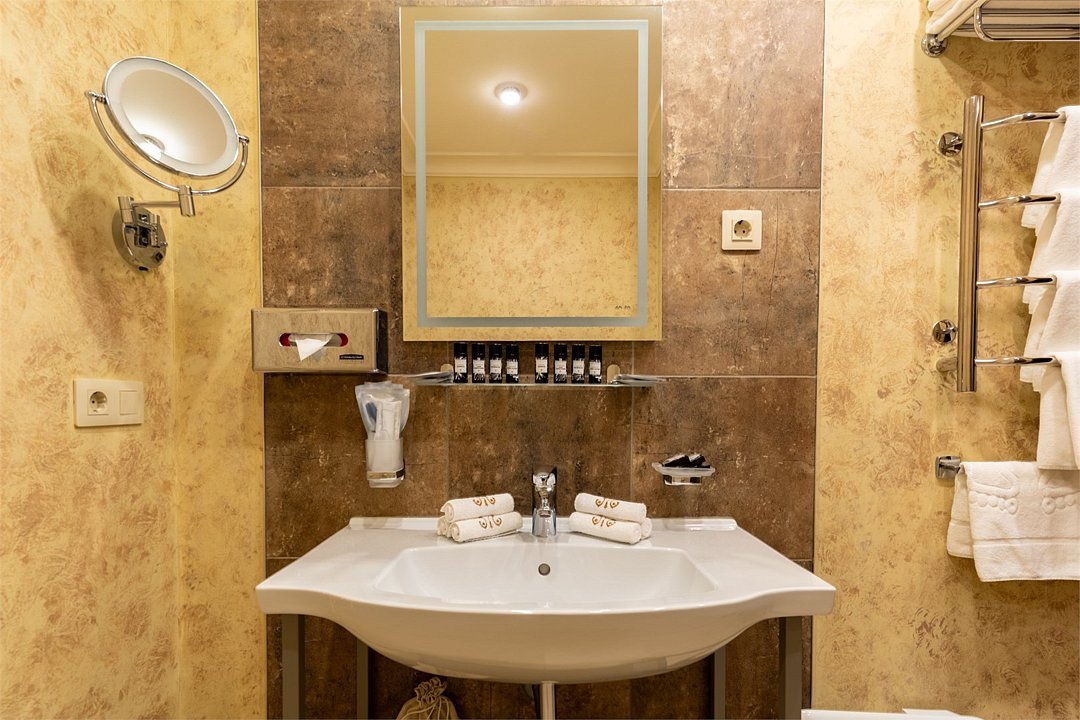 Уютные и небольшие номера Делюкс подходят для размещения семей с детьми. Номера расположены на 2, 3, 4 этажах в литерах А и В здания. В ванной комнате - душ.