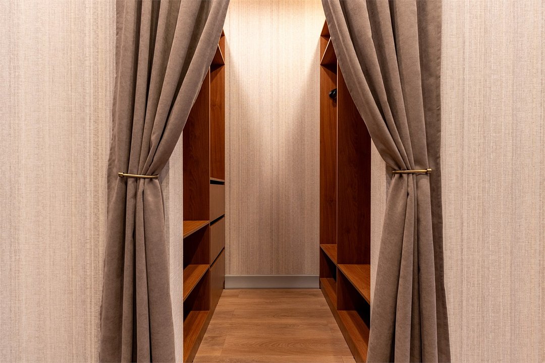 Интерьеры номеров выполнены в приглушенных оттенках серого или бежевого цветов с добавлением текстиля акцентного цвета (бордовый, пыльно-розовый, синий, фиолетовый, зеленый).