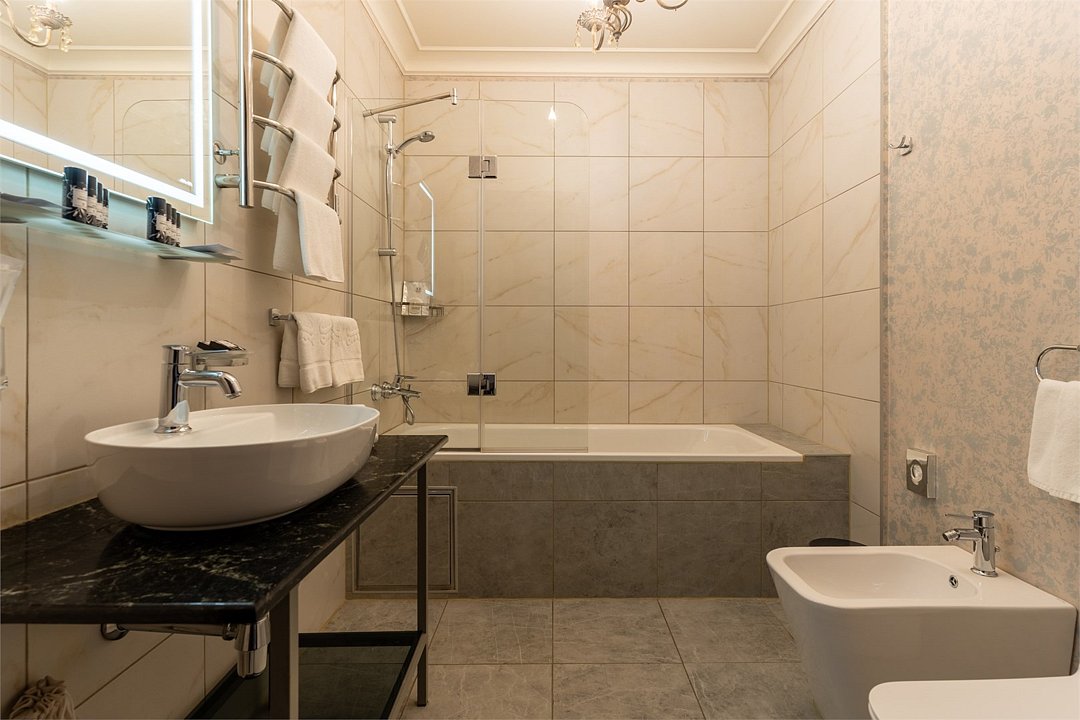 спутниковое телевидение, кабельное телевидение, интерактивное телевидение, Wi-Fi, кондиционер, настольные лампы, фен, электронные замки, кофемашина, душевая кабина, ванна, биде, банные принадлежности, халаты, тапочки, косметические средства, балкон с красивым видом, кровать «Queen size», двуспальная кровать, кресла, гардеробная, вешалки, журнальный столик, багажная тумба, зеркало, комод, ковер, чайный набор, обслуживание номеров, сейф, раковина, косметическое зеркало, питьевая вода, гостиная зона, вид на город, вид на реку, меню подушек, стаканы, туалетные средства, туалет, цифровое тв, диван-кровать, раскладной диван, внутренний телефон, телевизор со Smart TV, номер для некурящих, неограниченное посещение СПА, чайная станция, без питомцевВ номере