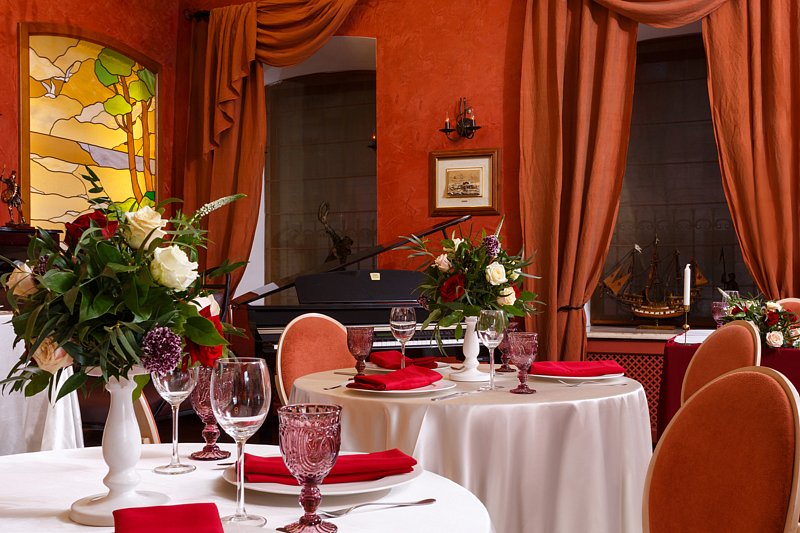 Приглашаем устроить свадебный прием в элегантном ресторане Marco Polo. В этот особенный день возьмем на себя все организационные моменты. Предлагаем несколько вариантов банкетного меню русской домашней и европейской кухни от 2 500 ₽ на персону. Для вас готовы предложить индивидуальный подход в составлении меню с вариантами под ваш бюджет. При необходимости банкетный менеджер отеля также поможет в организации мероприятия под "ключ" или подбор ведущего и программы торжества, флористика, тематическое украшение зала, лимузин, заказ торта, фотосъемка и видеограф.