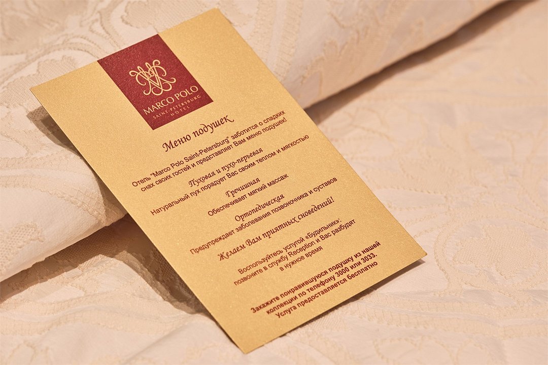 Для проведения небольших событийных мероприятий в формате делового обеда, презентации с дружественным фуршетом или небольшой пресс-конференции предлагаем аренду зала ресторана Marco Polo, вместимостью до 25 персон. Услугу организации питания на мероприятии предлагает провести в формате кофе-брейка, деловых обедов или ужинов. На территории всего отеля работает бесплатная Wi-Fi связь.