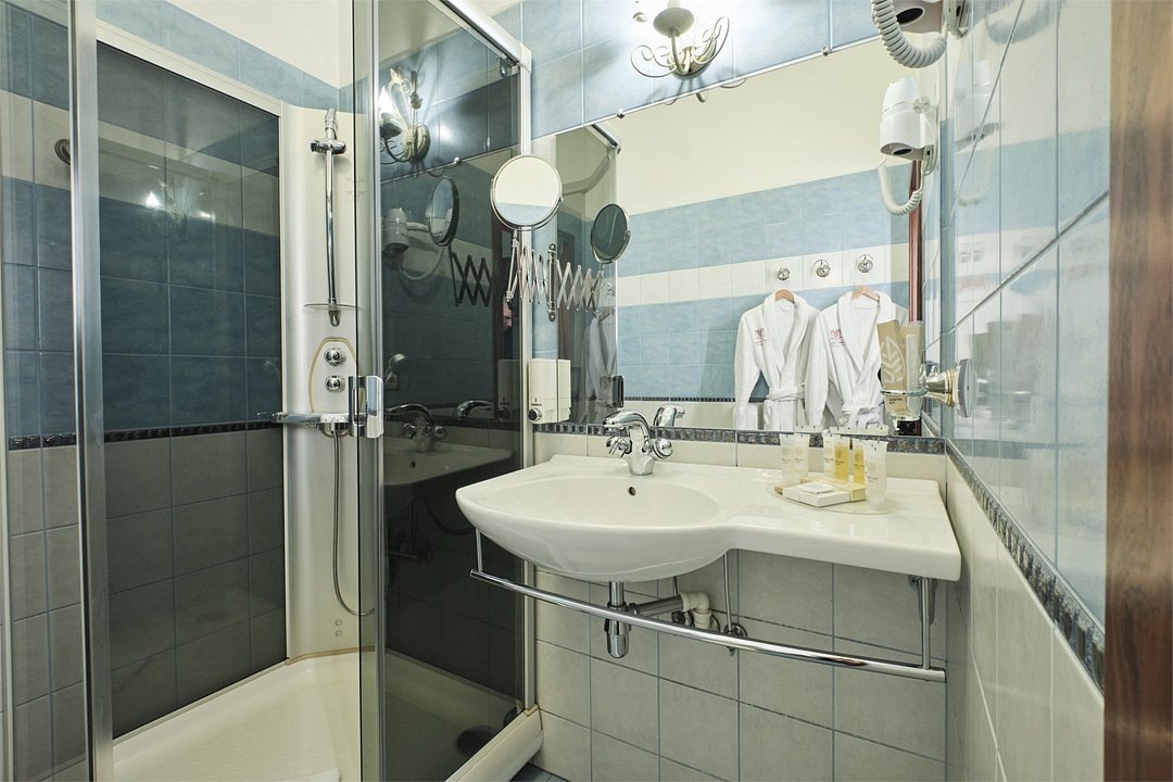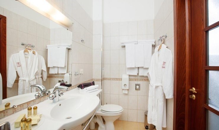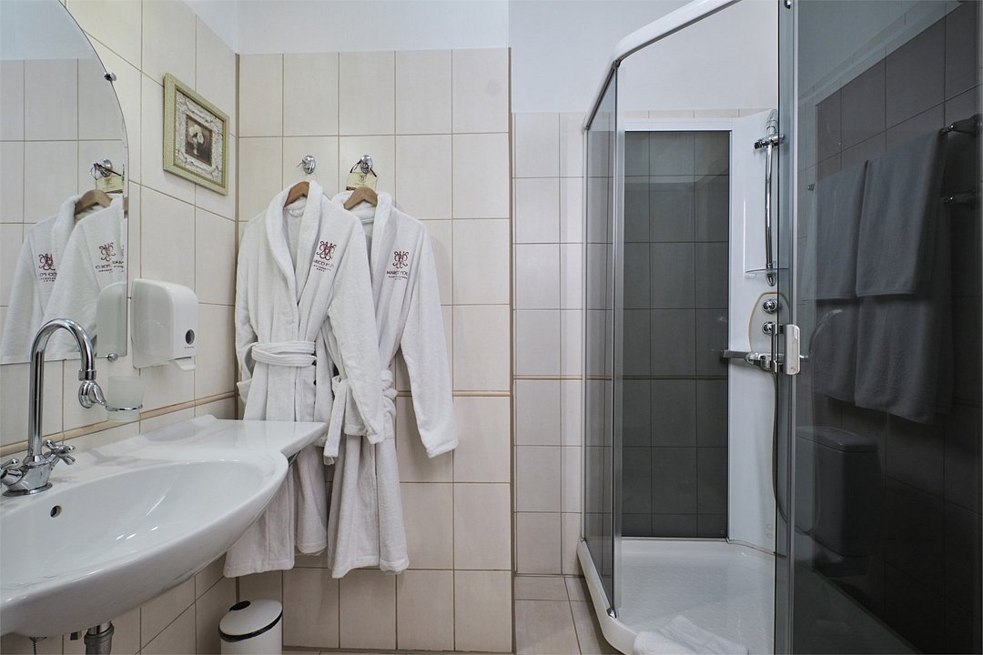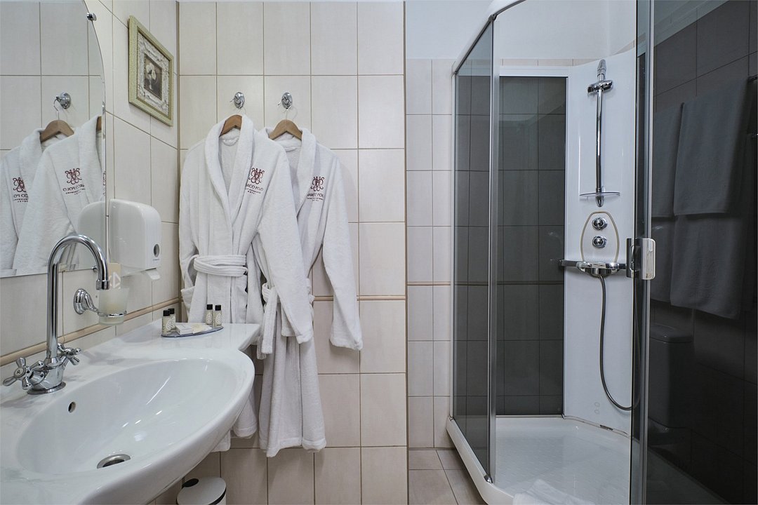с/у с душевой кабиной, ТВ, телефон, мини-бар, К, фен, халат и тапочки