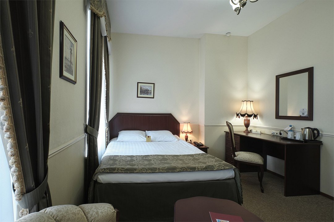 Отель расположился в историческом 5-этажном здание XIX века. Для удобства гостей работает лифт. Номера выполнены в классическом стиле. Комнаты оснащены красивой мебелью, установлен телевизор со спутниковыми каналами, мини-бар и кондиционер. Санузел оснащен современной ванной или душевой кабиной, для гостей предоставляются тапочки, полотенца, косметические принадлежности, халаты и фен. На территории отеля функционирует ресторан с красиво оформленным интерьером и разнообразием блюд.