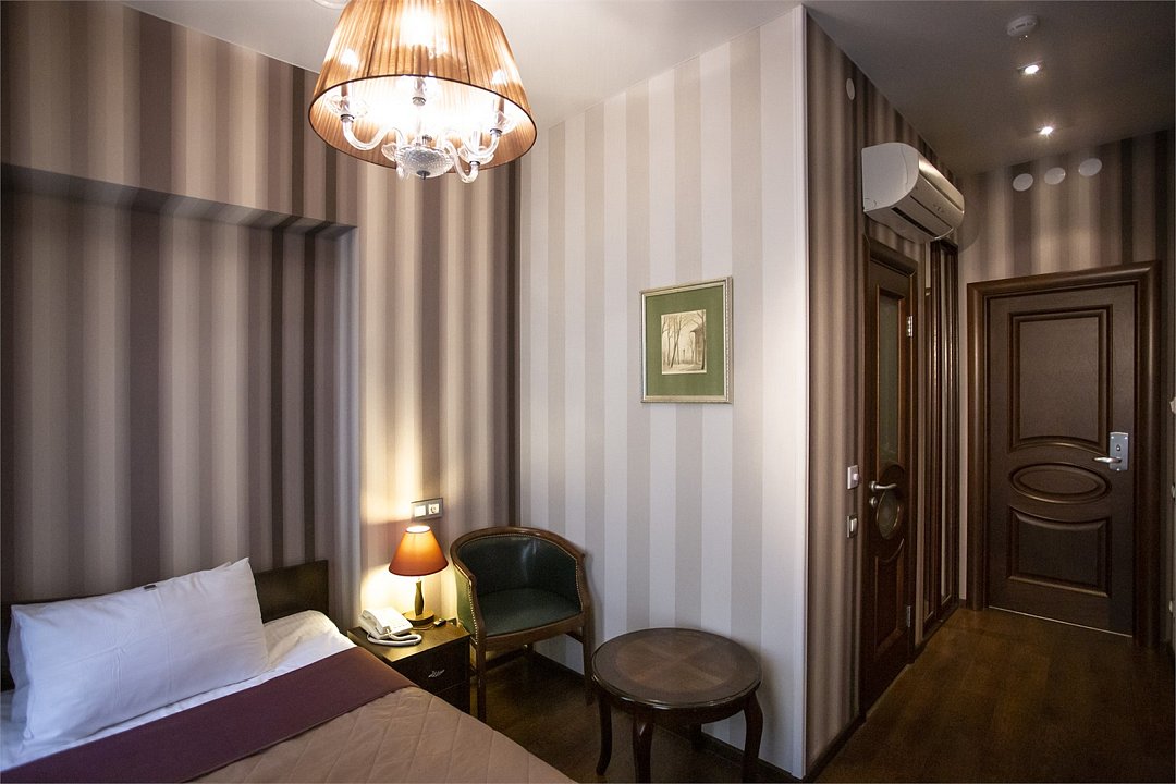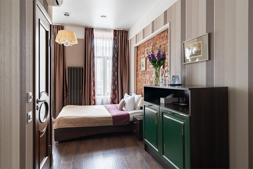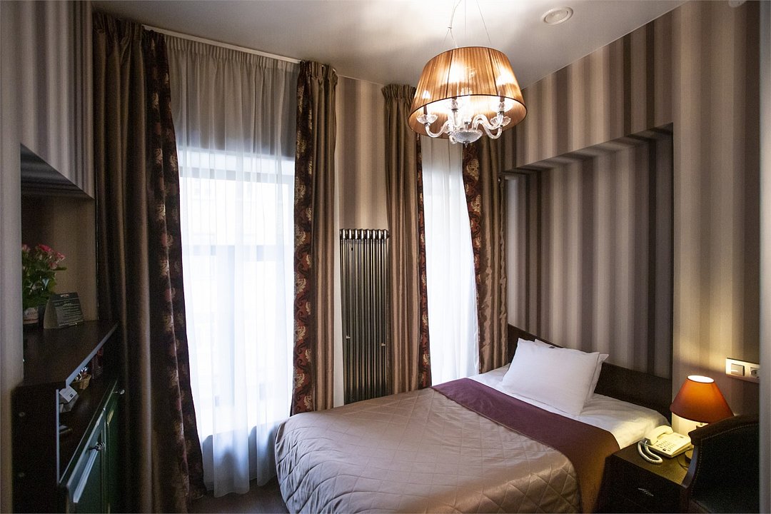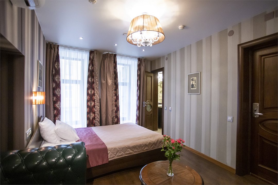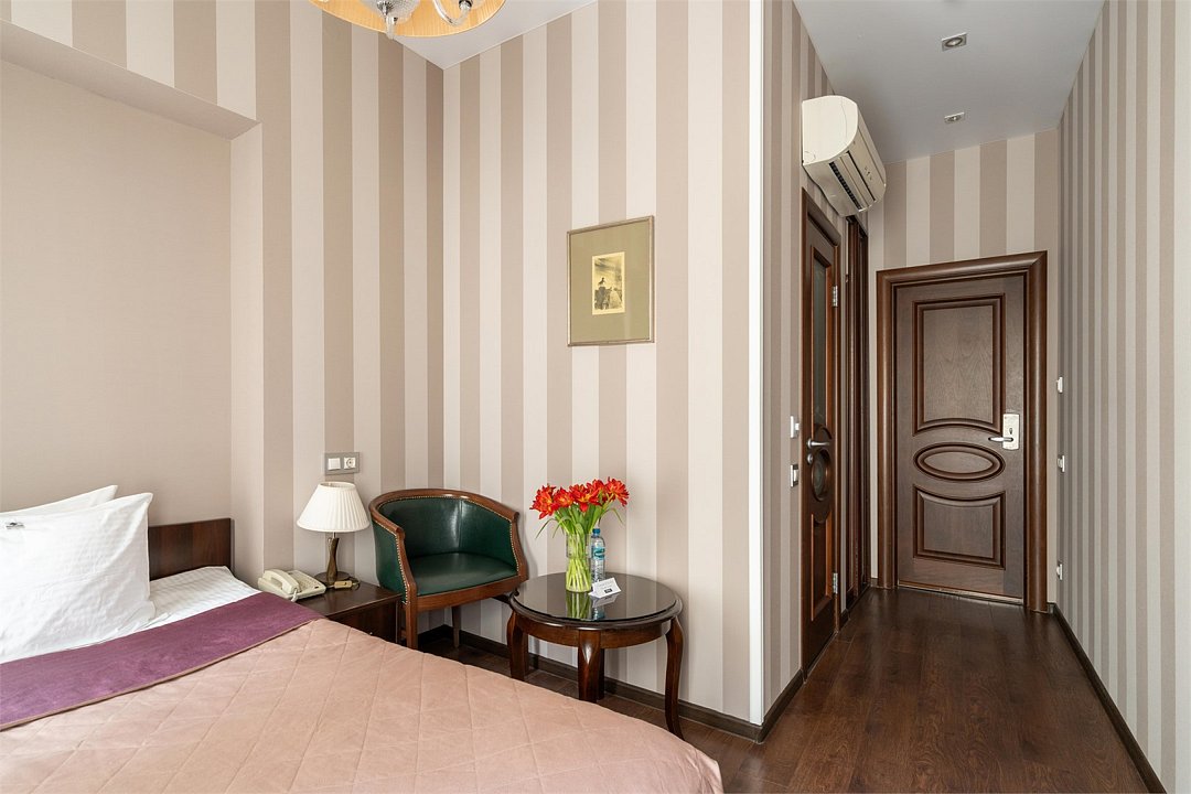 Комфортабельный номер, предназначенный для размещения одного гостя, идеально подойдет для деловой поездки. В номере комфортная широкая кровать, ванная оснащена удобной душевой кабиной. Есть номера с окнами в двор, что гарантирует тишину, а также и с видом на улицу Марата, что позволит насладится городским пейзажем.Услуги и удобства