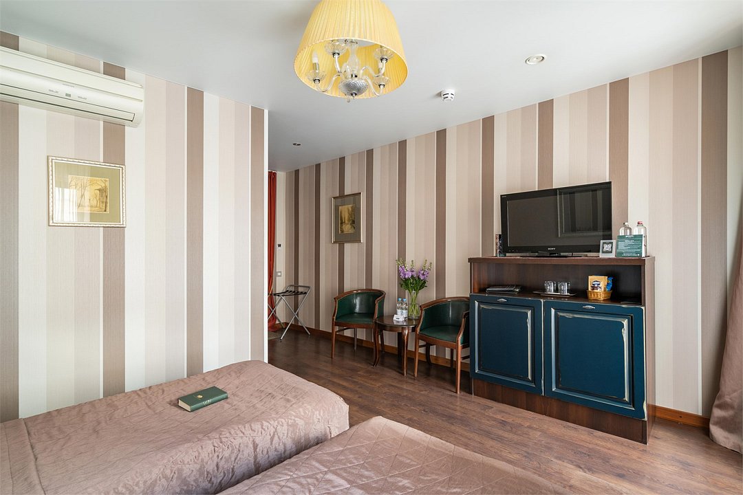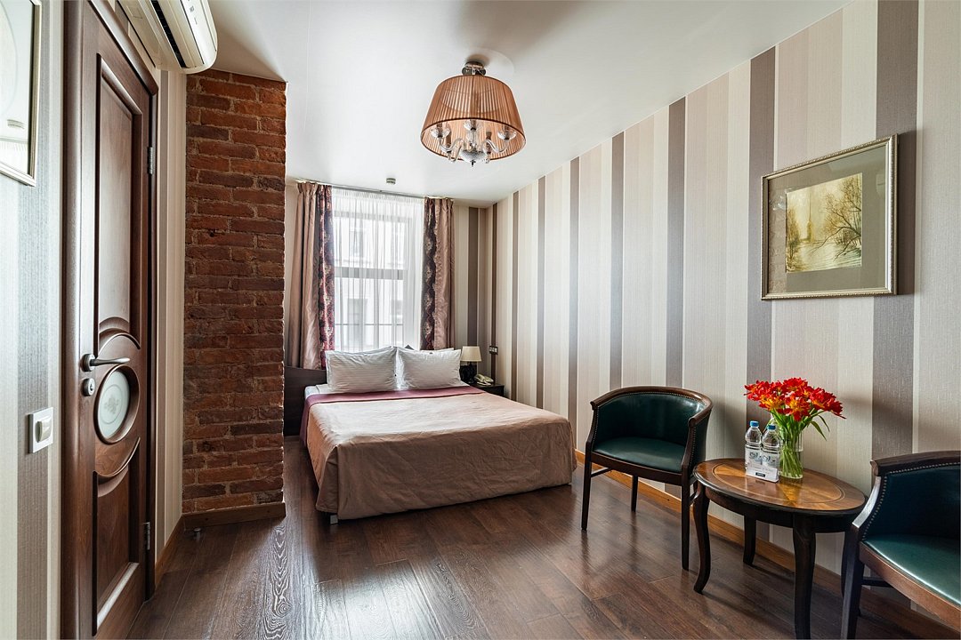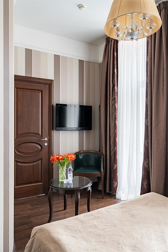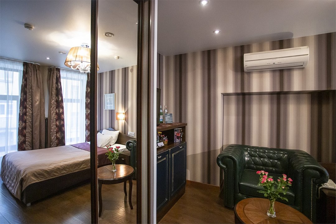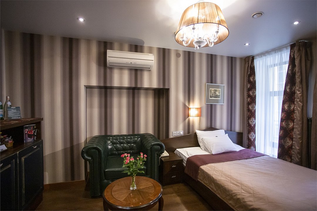 Комфортабельный номер, предназначенный для размещения одного гостя, идеально подойдет для деловой поездки. В номере комфортная широкая кровать, ванная оснащена удобной душевой кабиной. Есть номера с окнами в двор, что гарантирует тишину, а также и с видом на улицу Марата, что позволит насладится городским пейзажем.Услуги и удобства