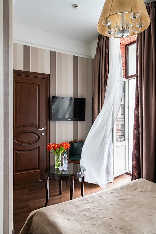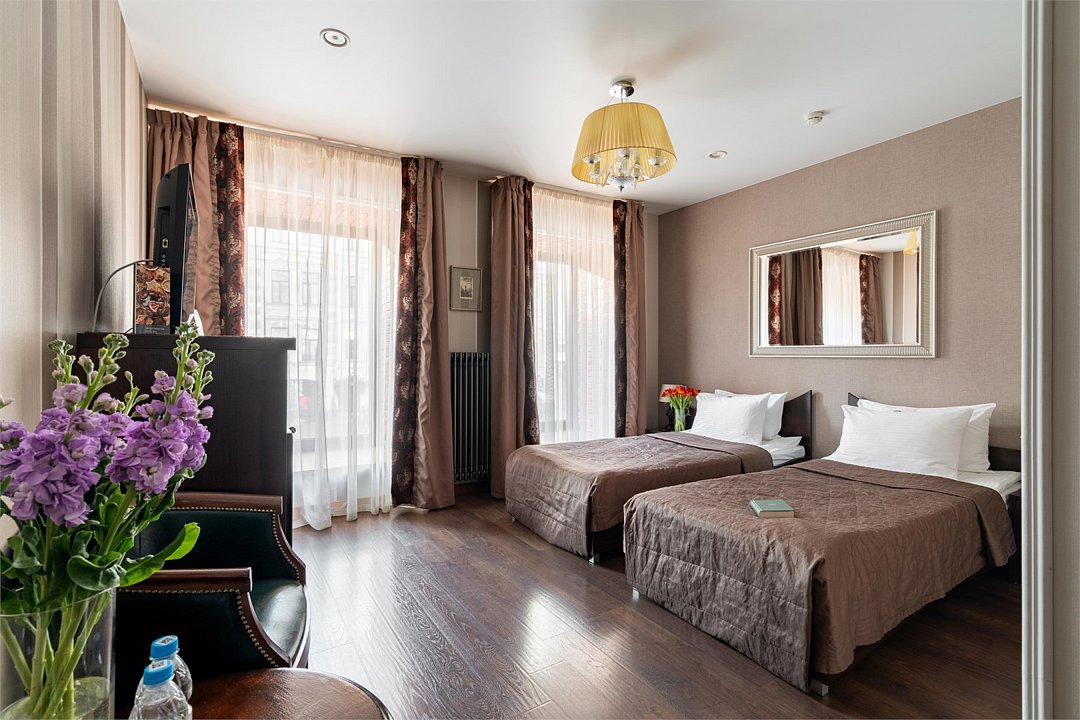 Путешествие в одиночкуПрекрасный отель для отдыхаВсегда останавливаюсь в этом отеле, есть приятная бонусная программа. Отличное месторасположение в пешей доступности от Московского вокзала, 3 минуты до метро и до Невского, везде хожу пешком. Очень нравятся континентальные завтраки. Накануне заказываешь по меню, приносят в номер к времени, которое указываете при заказе. Все очень свежее и вкусное. Чистые номера, отличная сантехника, в номере кондиционер. В этот раз вид был на мою любимую улицу Марата. Тихо, хорошая звукоизоляция. Гостеприимный персонал, всегда приветливые, доброжелательные. Возвращаюсь каждый раз с удовольствием. Надеюсь приехать еще ни раз. Немного не хватает чайника в номере. Думаю, из-за пожарной безопасности, отель в историческом доме. В номере есть всё необходимое.