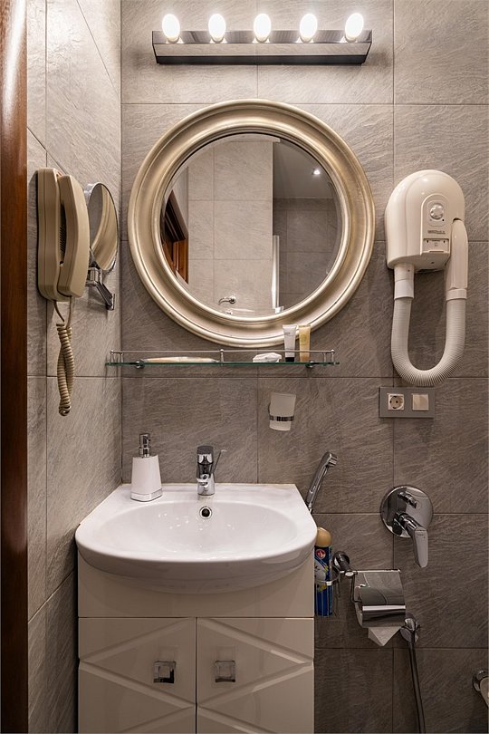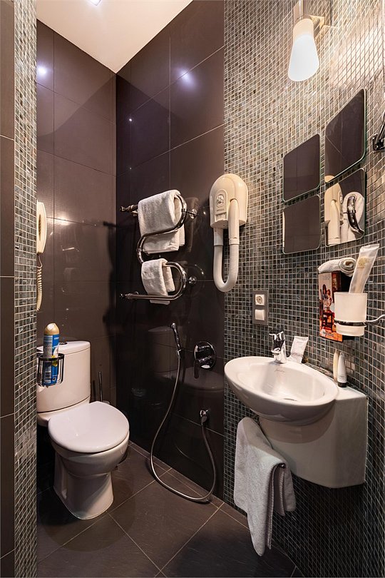 телевизор, Wi-Fi, телефон, холодильник, кондиционер, светильник, настольные лампы, фен, электронные замки, радио, обогреватель, санузел, биде, банные принадлежности, халаты, банные полотенца, тапочки, гигиенические средства, косметические средства, полутораспальная кровать, стулья, шкаф для одежды, гардеробная, вешалки, журнальный столик, багажная тумба, зеркало, комод, мини-бар, обслуживание номеров, информационная карта, меню, сейф, унитаз, раковина, душ, вид на город, центральное кондиционирование, можно с питомцамиВ гостиничном номере