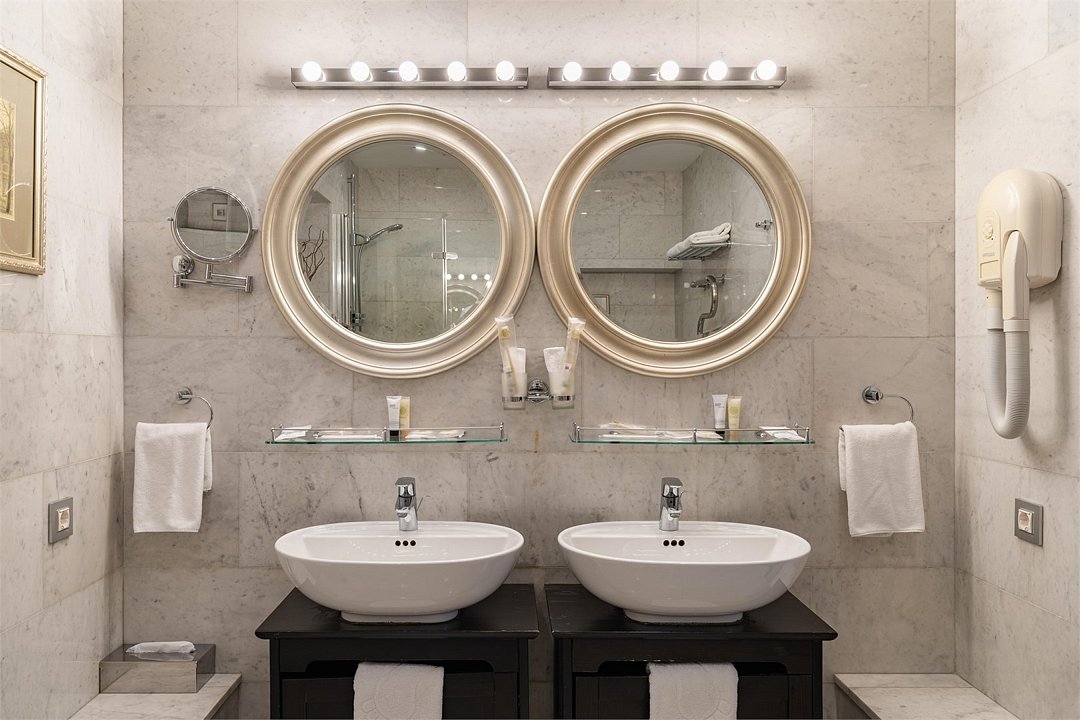 телевизор, Wi-Fi, телефон, холодильник, кондиционер, светильник, настольные лампы, фен, электронные замки, радио, обогреватель, ванна или душевая кабина, биде, халаты, банные полотенца, тапочки, гигиенические средства, косметические средства, две односпальные или большая двуспальная кровать, тумбы, стулья, шкаф для одежды, вешалки, журнальный столик, багажная тумба, зеркало, мини-бар, обслуживание номеров, информационная карта, меню, сейф, унитаз, раковина, отопление, вид на город, центральное кондиционирование, можно с питомцамиВ гостиничном номере